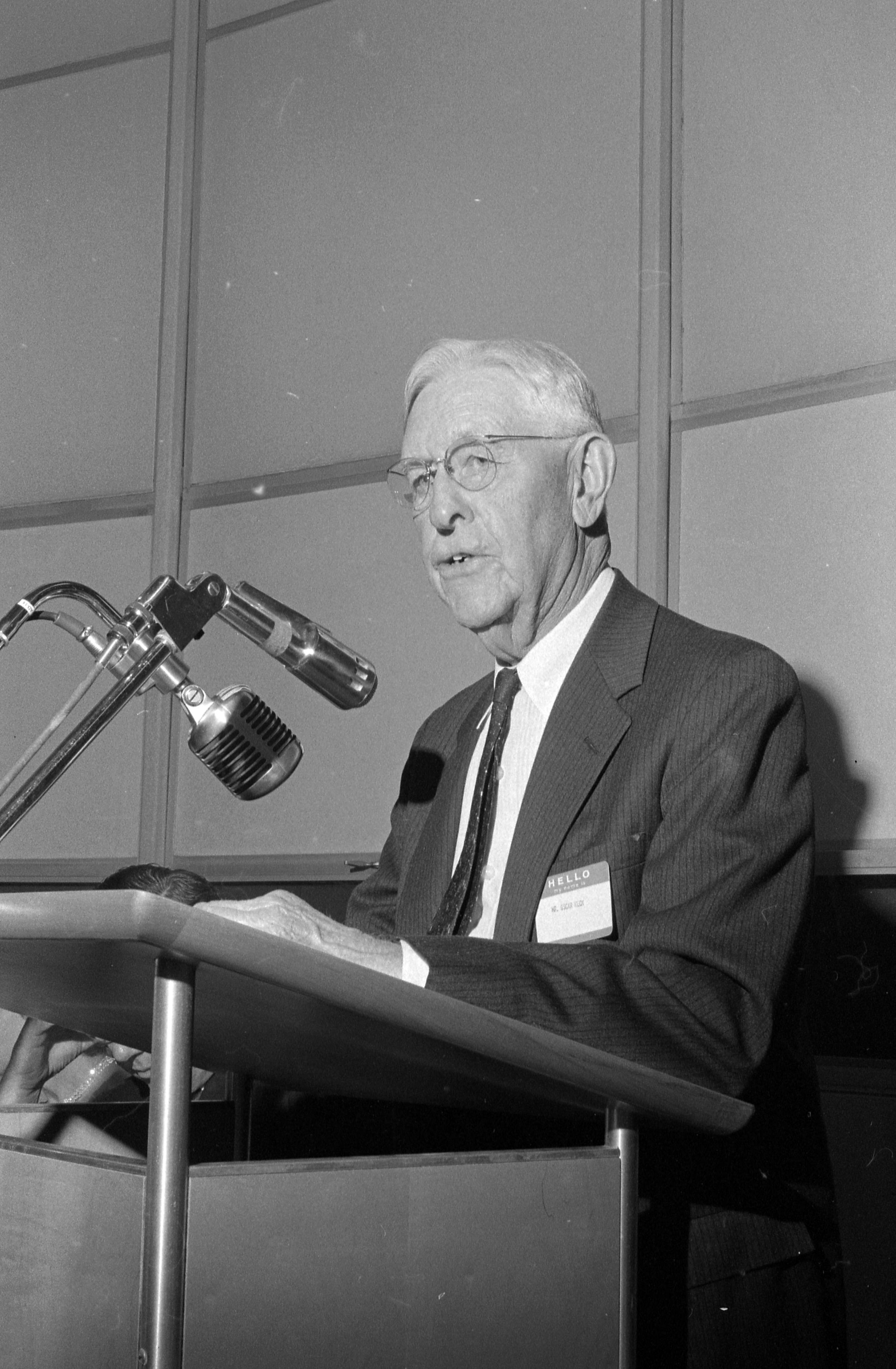 Oscar Keck at a GE dinner reception at the Mt. Vernon High School cafeteria