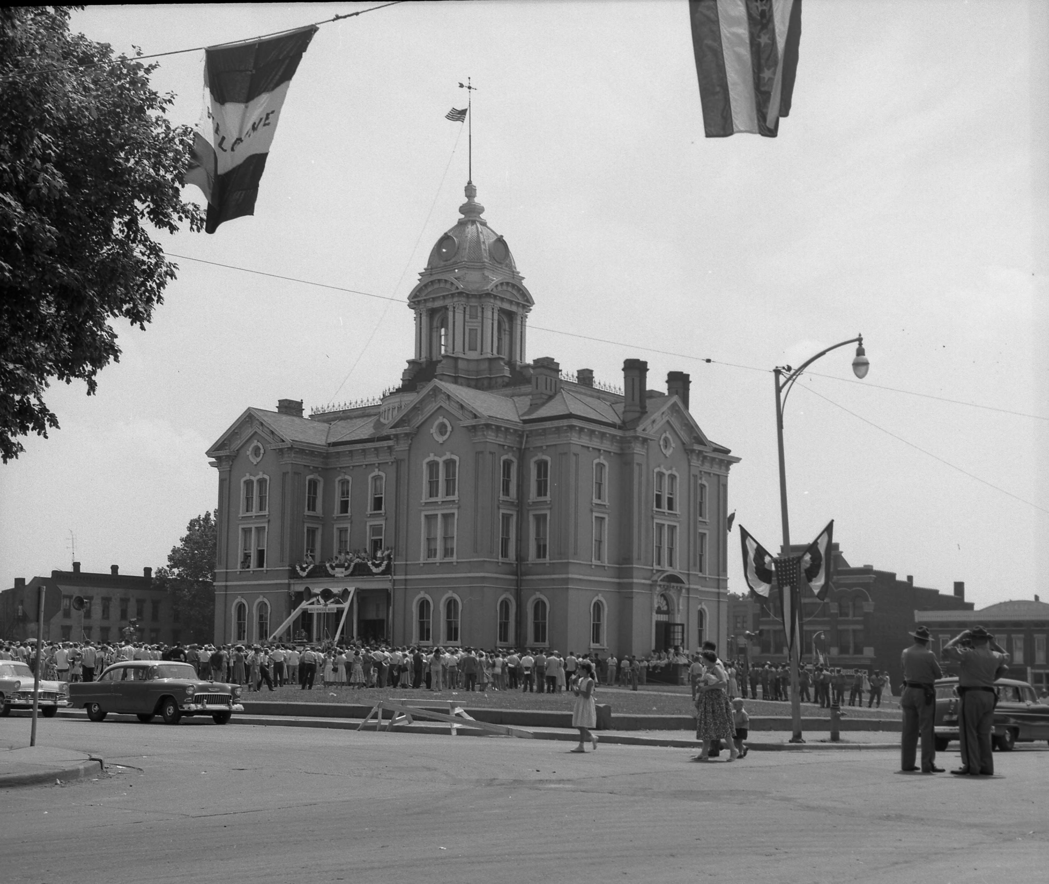 Crowds on Posey County Courthouse in Mt. Vernon, Indiana