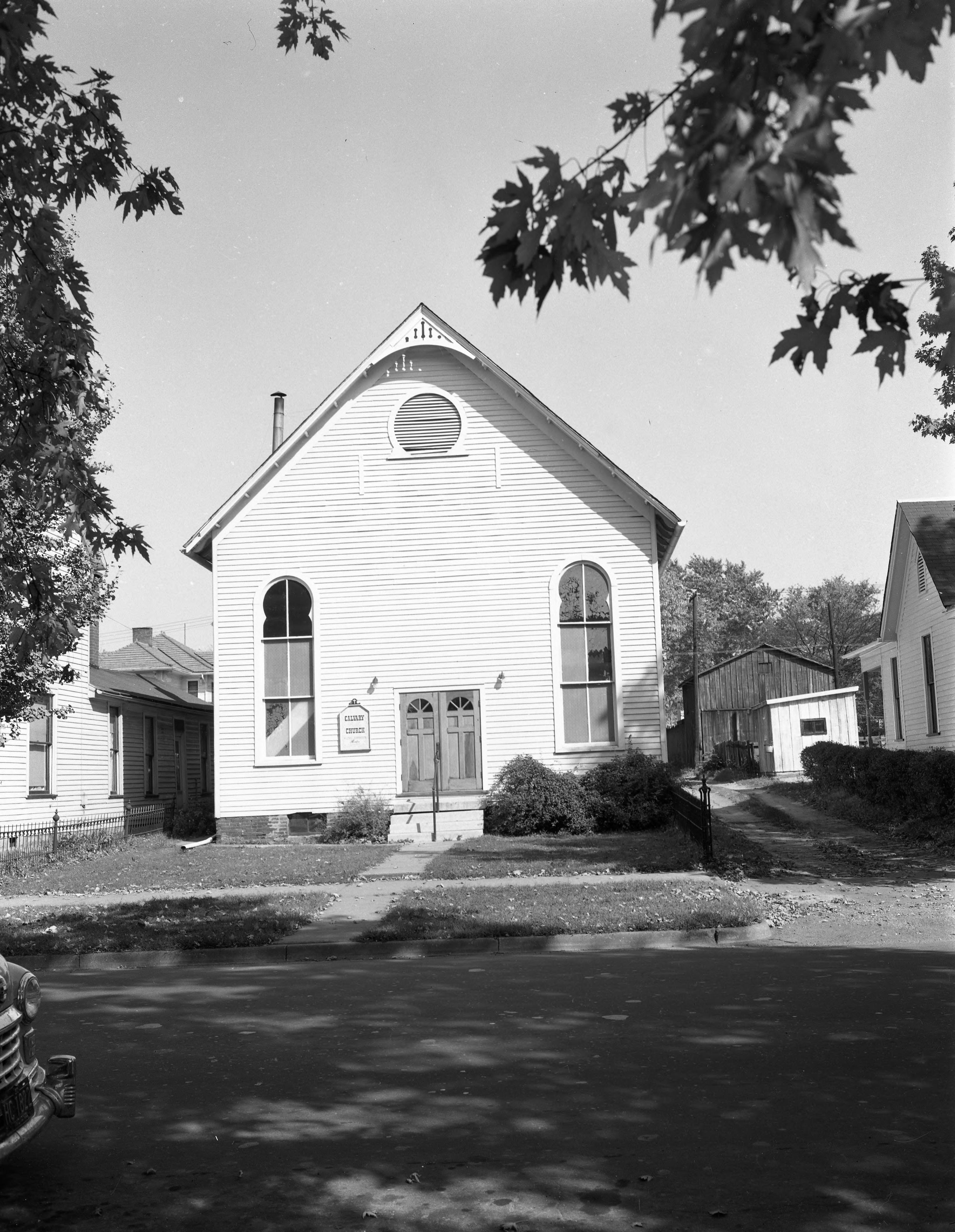 Calvary Baptist Church 618 Main St., but it is a larger, one story brick building. It appears as if that building replaced what is seen here. If so, then the buildings on both sides were also razed. This location originally was home to a Jewish Synagogue, Anshe Israel, for some 45 years, beginning in 1878.