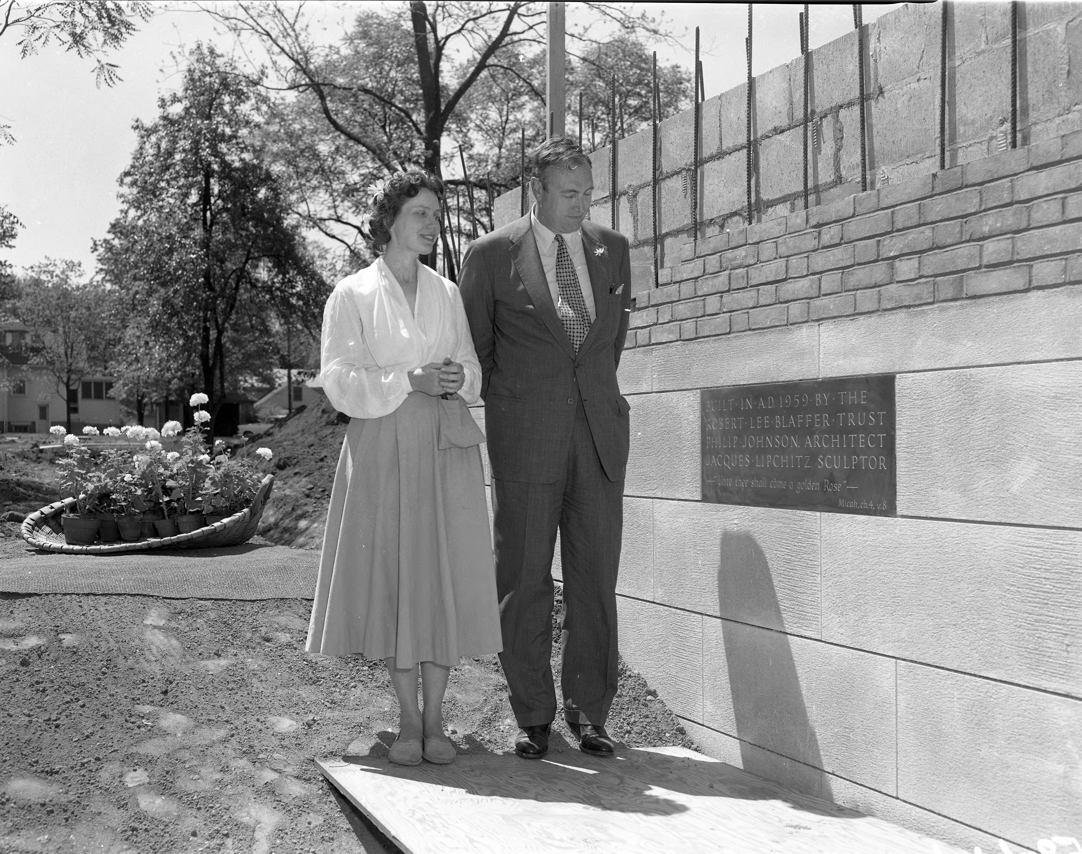 Dedication of the Roofless Church with Jane Blaffer Owen and Kenneth Dale Owen. At 420 North St., the Roofless Church was commissioned by Jane Blaffer Owen and designed by Philip Johnson. It is non-denominational, but operated under the auspices of the Episcopal Diocese of Indianapolis.