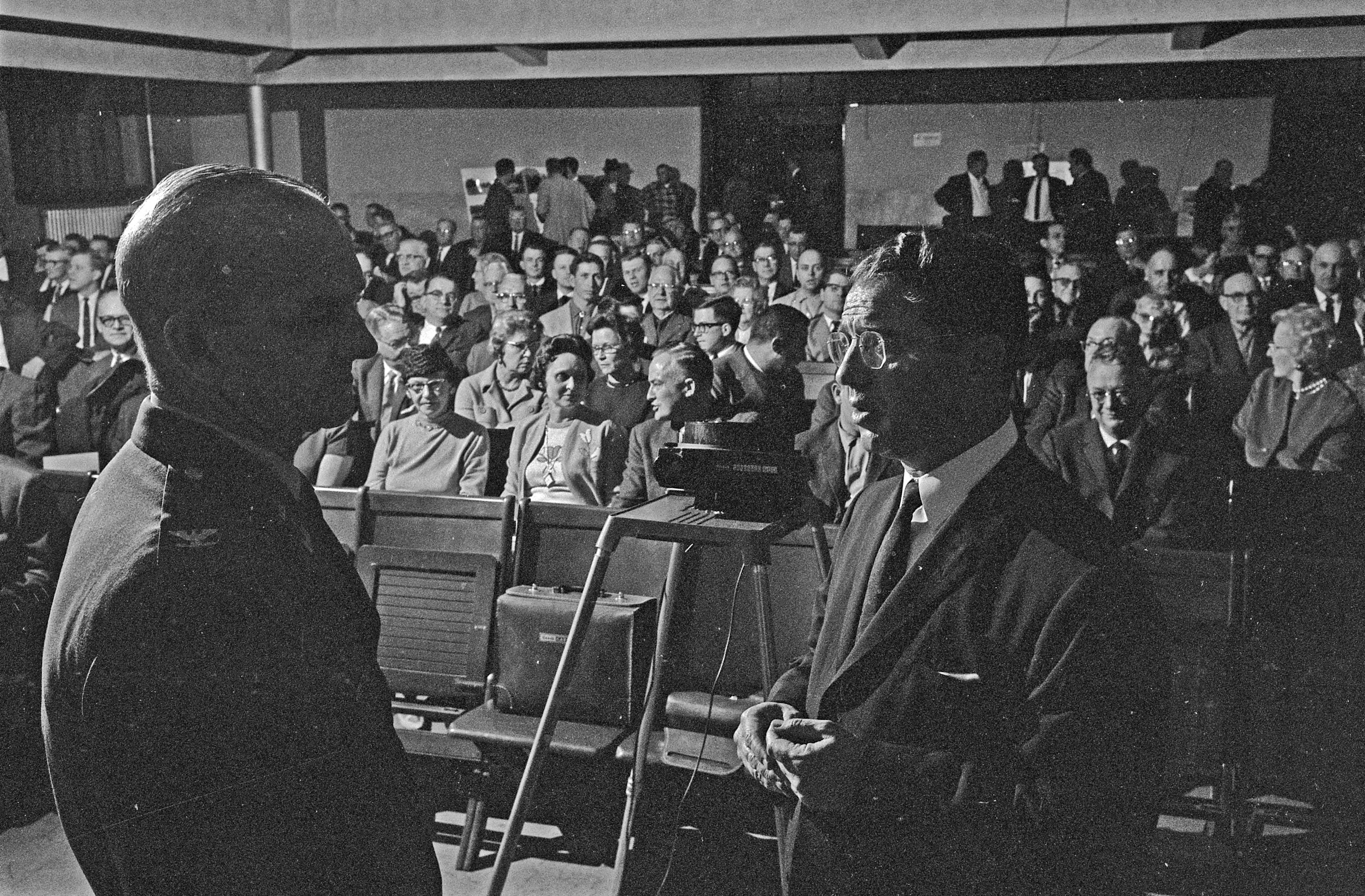 Senator Van Hartke possible at the Thralls Opera House, this is proably related to the dedication of the new lock and dam at Uniontown