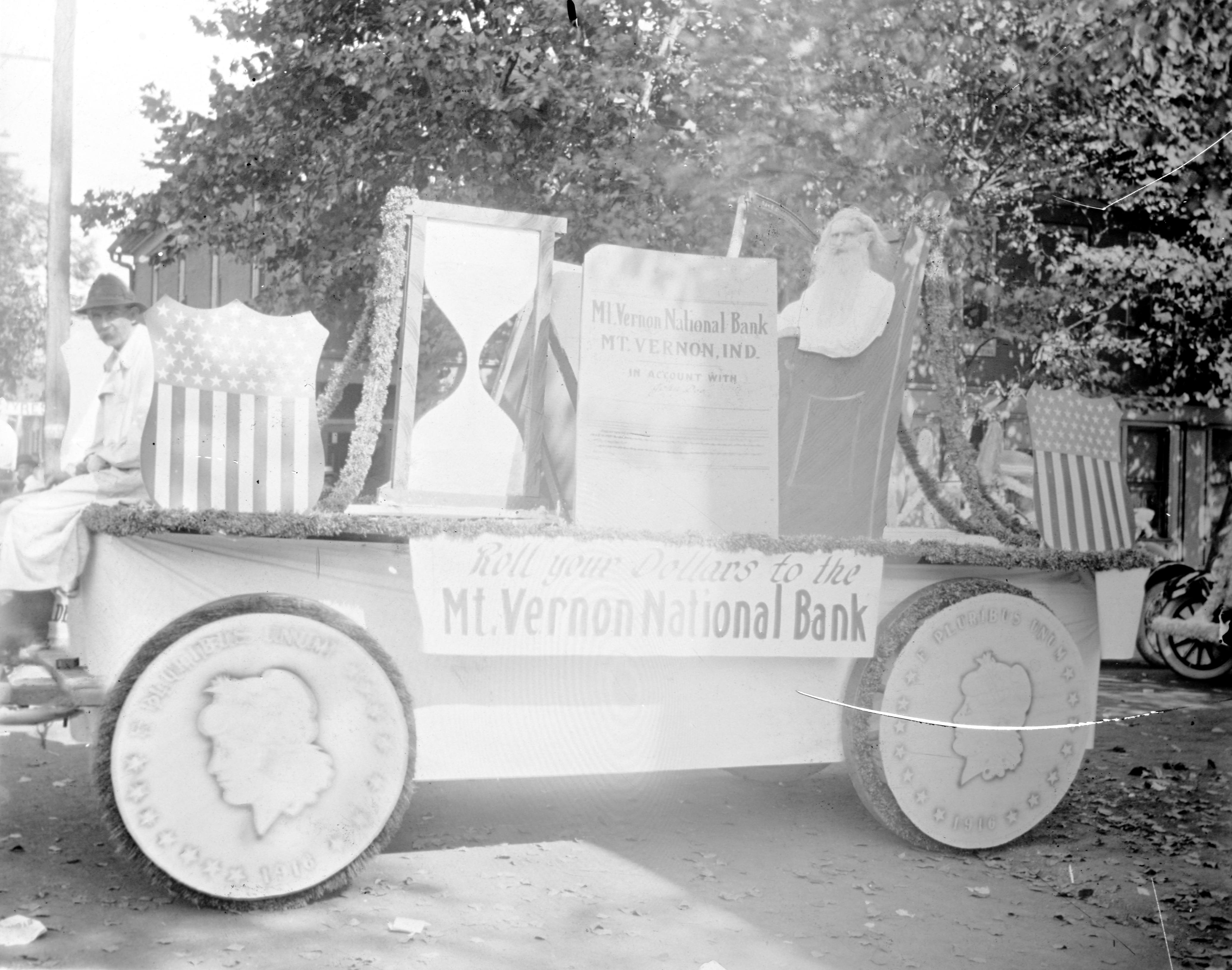 Mt. Vernon National Bank float, possibly for 1916 centennial of Mt. Vernon