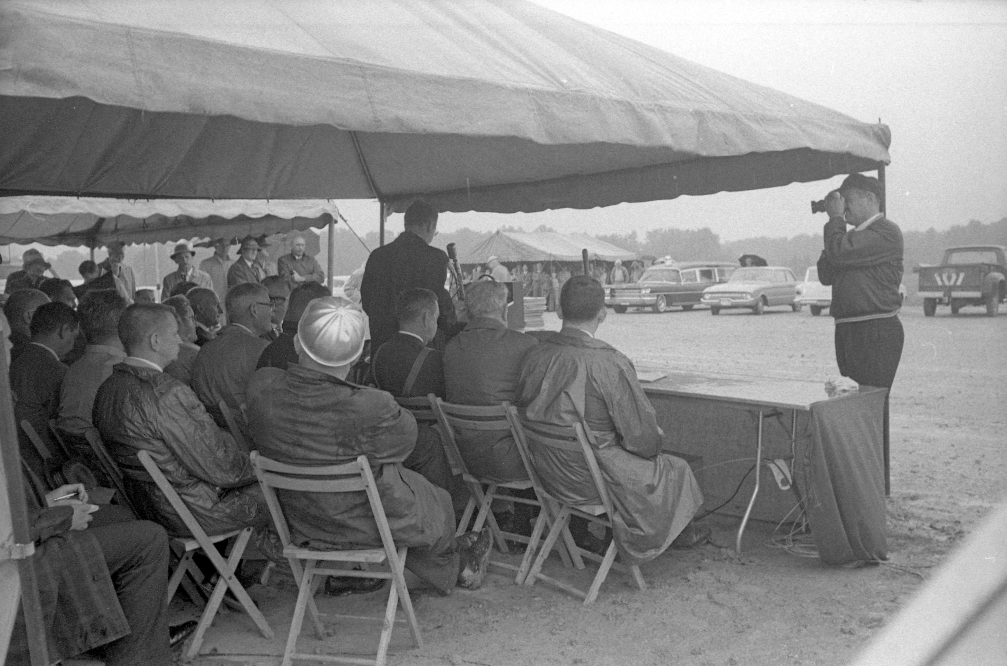 Ground breaking on Uniontown Lock and Dam. This dam replaced the lock and dams numbers 48 and 49. The facility is in Posey County, Indiana and Union County, Kentucky. It was the 17th lock and dam built on the Ohio River. It was renamed the John T. Myers Lock and Dam in 1996.