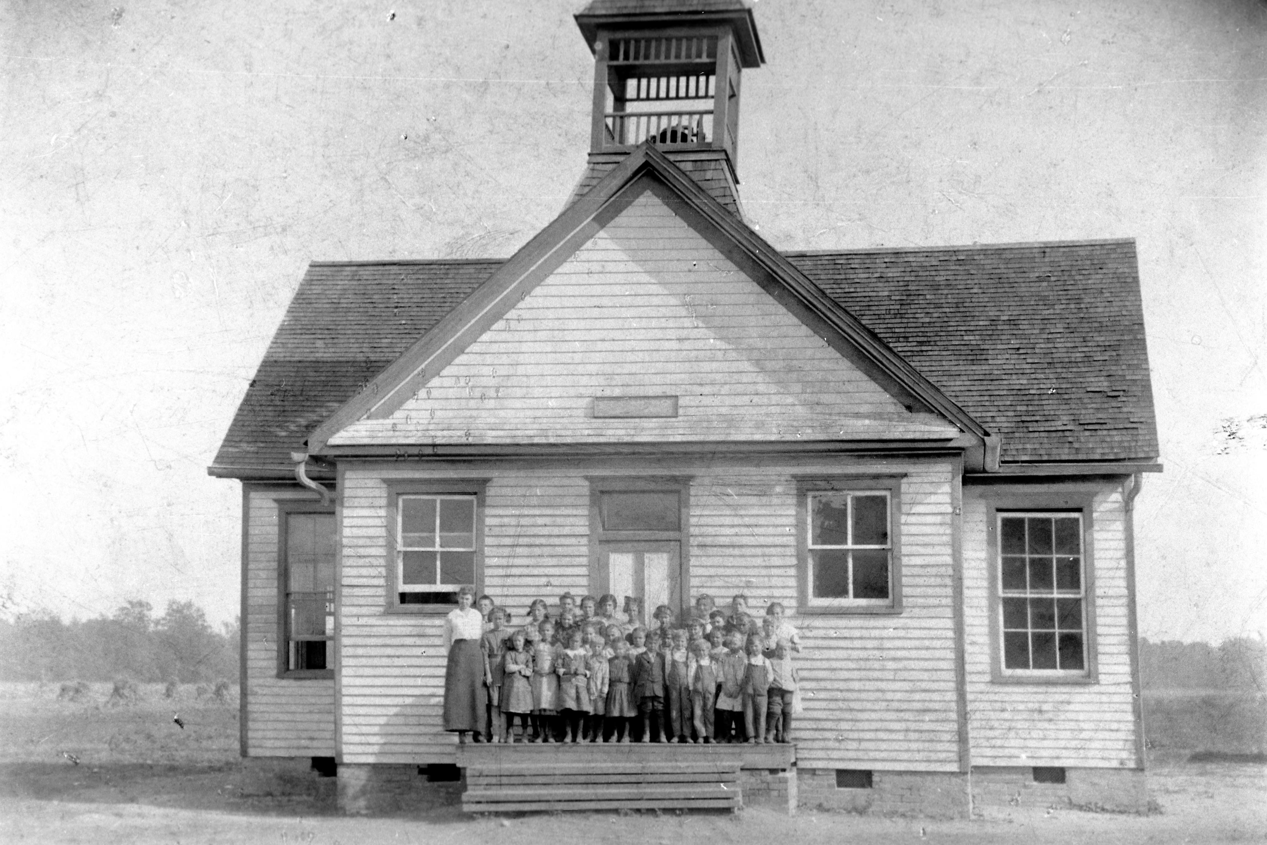 Teacher and students at Spencer School in Point Township, built in 1887