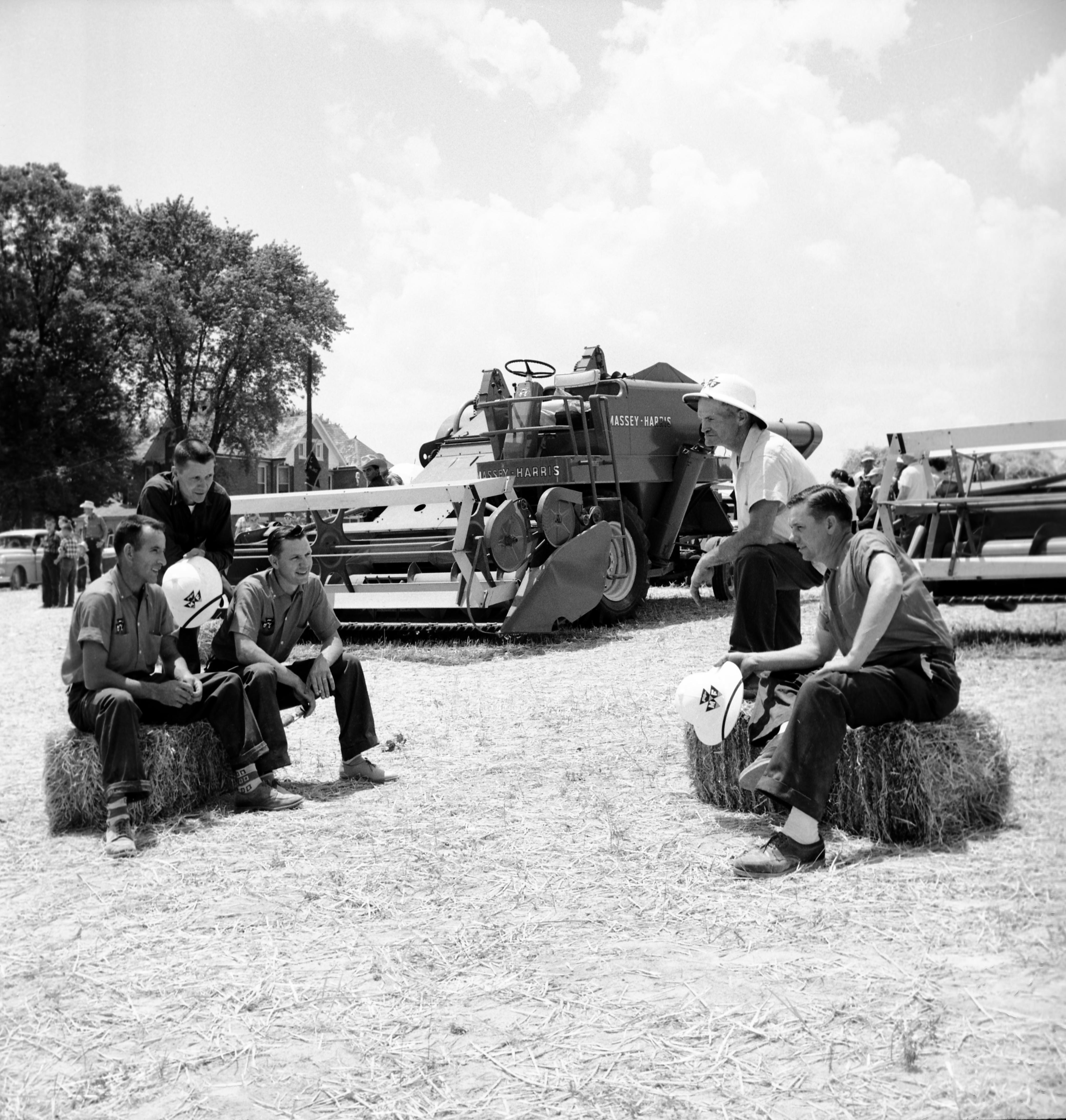 Men with Keck Gonnerman farm equipment. The Keck-Gonnerman Company has its roots in the Woody and Keck blacksmith shop in Posey County, Indiana, with John Keck and John C. Woody operating the business as partners. By 1880 Mr. Woody retired and sold his interest to John Onk of Louisville, Kentucky. The firm, now called Keck and Onk, prepared to make hollowware, but this ended when Mr. Onk sold his interest in the firm and returned to Louisville. William Gonnerman and Henry Kuebler joined John Keck as business partners. By 1884 the company name was changed to Keck-Gonnerman and they produced their first steam engine and thresher. The next year John Keck's brother, Louis H. Keck, joined the firm, buying out Mr. Kuebler's interest in the company. The Keck-Gonnerman Company produced steam engines, threshing equipment as well as mining equipment and sawmills under the Kay-Gee trademark. The company employed over 300 people in Mt. Vernon, Indiana, and their products were used as far away California, Canada, and Cuba. Over the years Keck-Gonnerman developed their product line. They built their first two-cylinder kerosene tractor in 1918, and by 1928 they began to sell four-cylinder tractors. Two years later they built their last Kay-Gee steam engine. Their thresher line kept pace with tractor development with the first tractor-size separator built in 1921 and the first steel frame separator built in 1926. By the early 1950s the self-propelled combine came on the market. In 1953 the Keck-Gonnerman Company was sold to two engineers from California, Harrison and Spenser, who hoped to manufacture new farm equipment. Two years later the company closed its doors. (http://cygnuschronicles.wikidot.com/tcotw:keck-gonnerman-co)