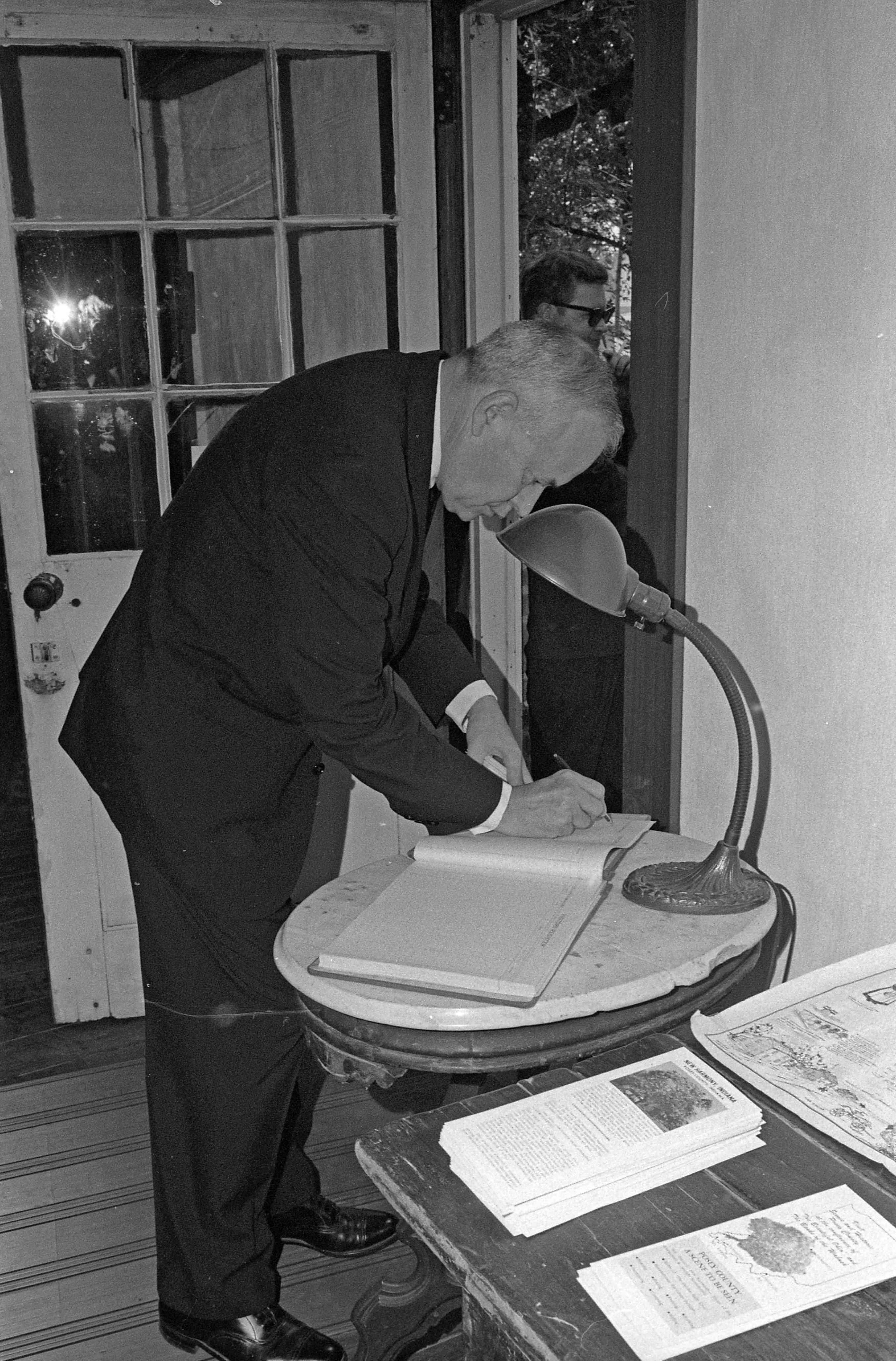 Gov. Roger Branigan visiting a Harmonist house. The Governor was in town for the memorial service for Dr. Paul Tillich