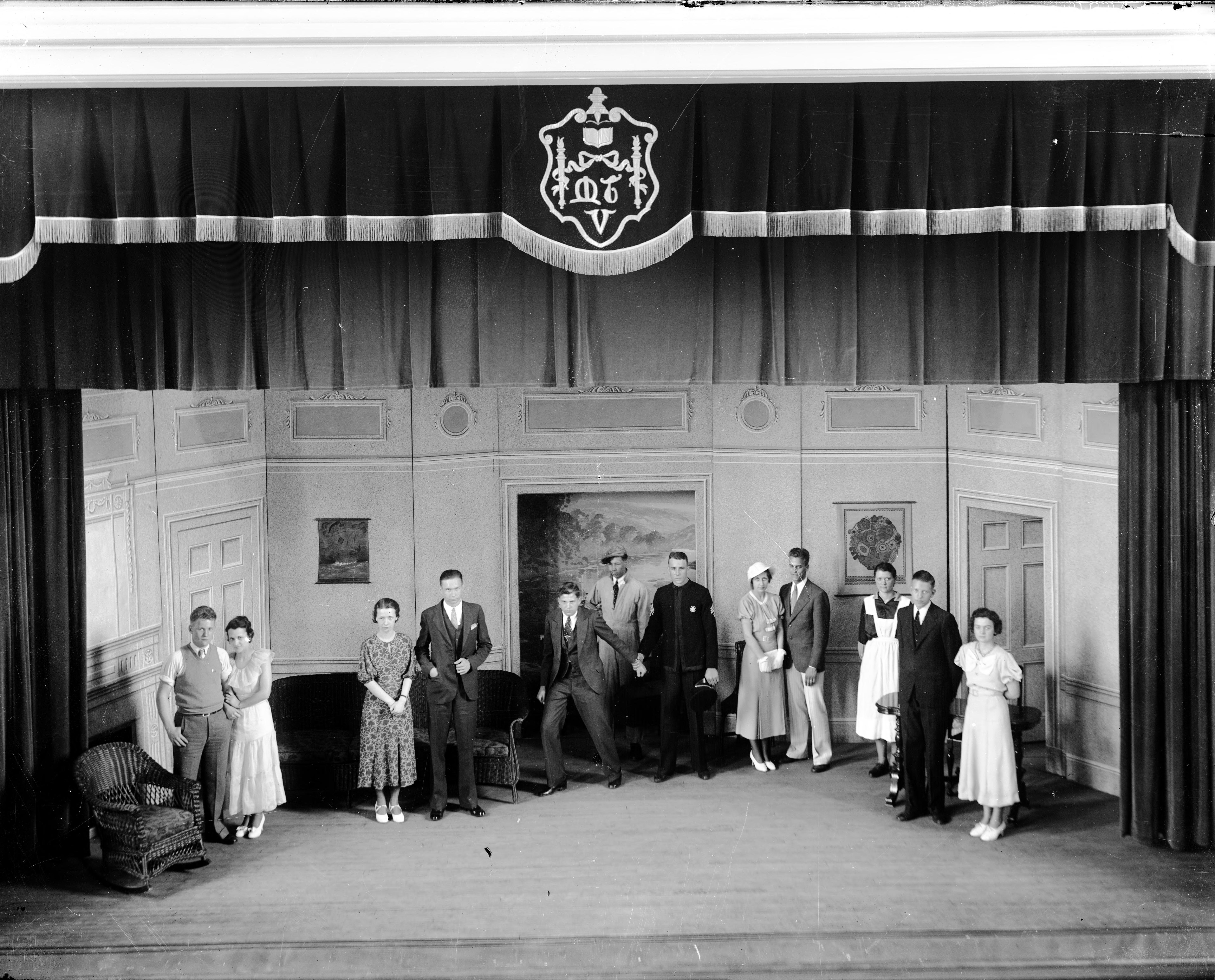 Looking down at the cast of a play on stage at Mt. Vernon High School
