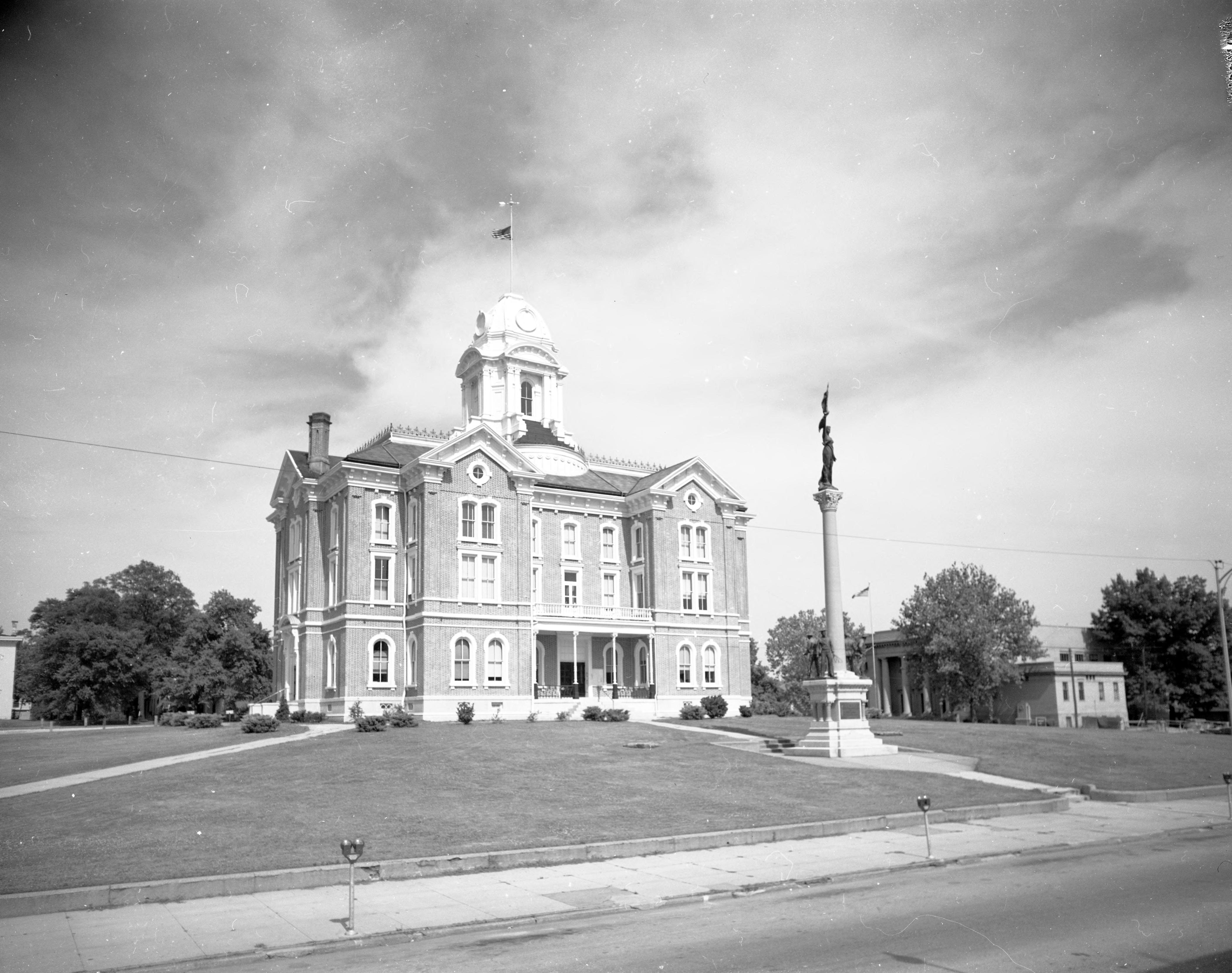 Posey County Courthouse at 300 Main St., built 1874-1876. Located at 300 Main St. but encompassing the block of Main/Walnut/3rd/4th Sts.