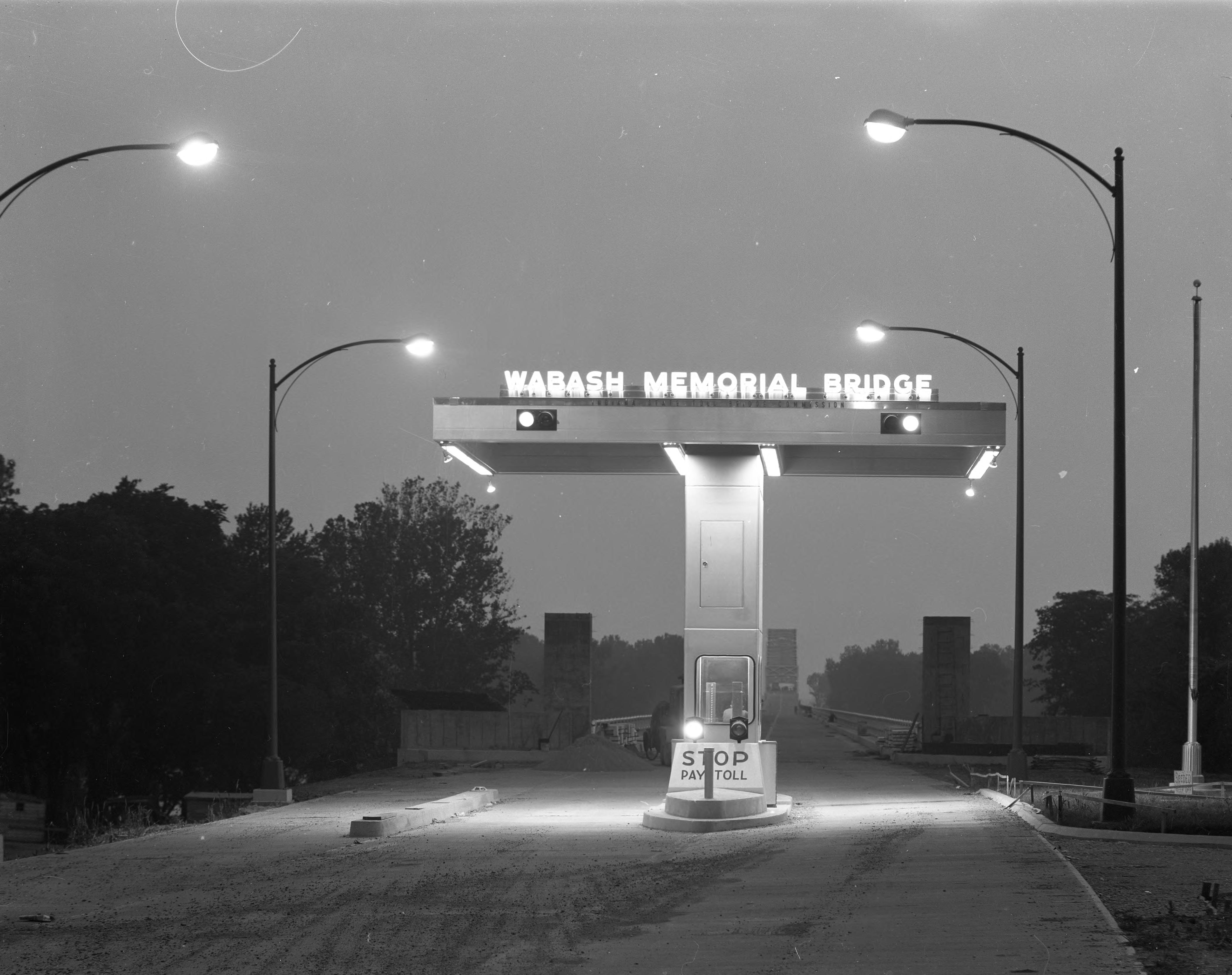 Wabash Memorial Bridge tollbooth at night