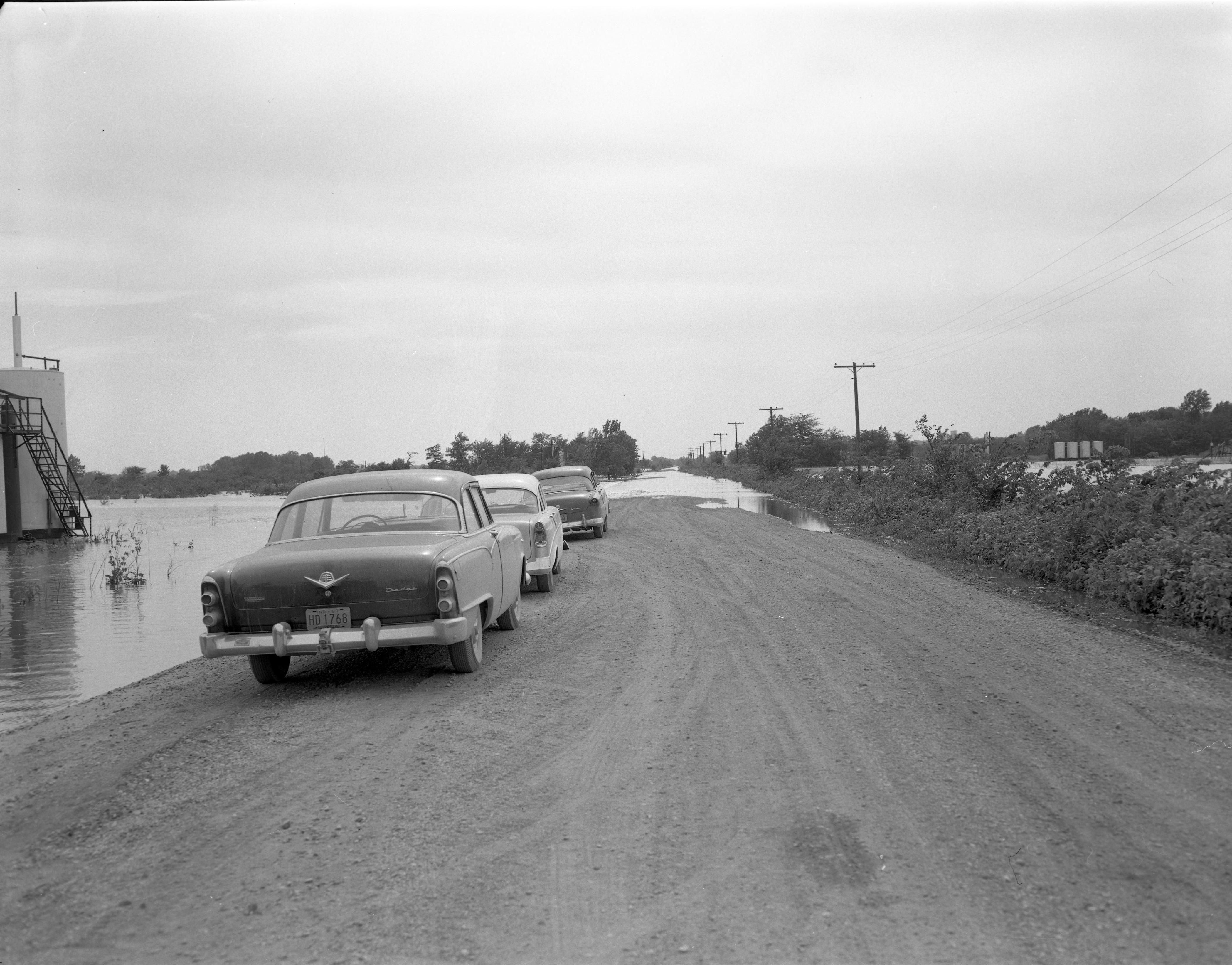 Flooding in Griffin, IN information from the July 3, 1957 issue of The Evansville Courier reported that the river was expected to crest, far above the 21 ft. level which already would have flooded fields of corn and soybeans. It was hoped that since the crest was not to take place until the following Saturday, there would be time for an all out effort to raise the levees would be successful, but since such a long stretch of the levee needed to be raised, it was thought problematical.