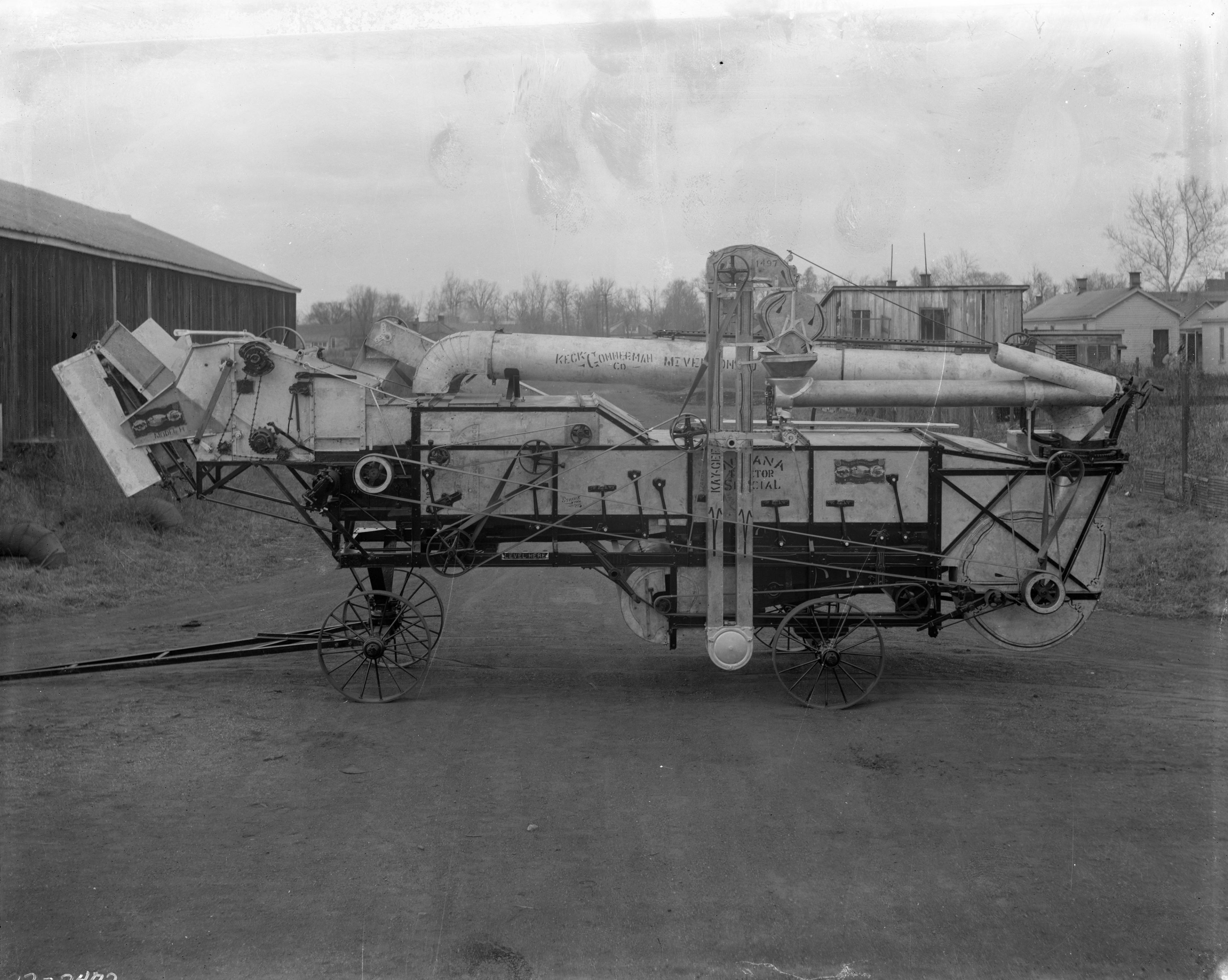 Keck Gonnerman wheat separator. Keck-Gonnerman was headquartered in Mt. Vernon and manufactured, sold, and serviced mobile steam engines and grain threshers; it was located at 4th St. and Pearl St. It was in operation 1873-1955. The Keck-Gonnerman Company has its roots in the Woody and Keck blacksmith shop in Posey County, Indiana, with John Keck and John C. Woody operating the business as partners. By 1880 Mr. Woody retired and sold his interest to John Onk of Louisville, Kentucky. The firm, now called Keck and Onk, prepared to make hollowware, but this ended when Mr. Onk sold his interest in the firm and returned to Louisville. William Gonnerman and Henry Kuebler joined John Keck as business partners. By 1884 the company name was changed to Keck-Gonnerman and they produced their first steam engine and thresher. The next year John Keck's brother, Louis H. Keck, joined the firm, buying out Mr. Kuebler's interest in the company. The Keck-Gonnerman Company produced steam engines, threshing equipment as well as mining equipment and sawmills under the Kay-Gee trademark. The company employed over 300 people in Mt. Vernon, Indiana, and their products were used as far away California, Canada, and Cuba. Over the years Keck-Gonnerman developed their product line. They built their first two-cylinder kerosene tractor in 1918, and by 1928 they began to sell four-cylinder tractors. Two years later they built their last Kay-Gee steam engine. Their thresher line kept pace with tractor development with the first tractor-size separator built in 1921 and the first steel frame separator built in 1926. By the early 1950s the self-propelled combine came on the market. In 1953 the Keck-Gonnerman Company was sold to two engineers from California, Harrison and Spenser, who hoped to manufacture new farm equipment. Two years later the company closed its doors. (http://cygnuschronicles.wikidot.com/tcotw:keck-gonnerman-co)