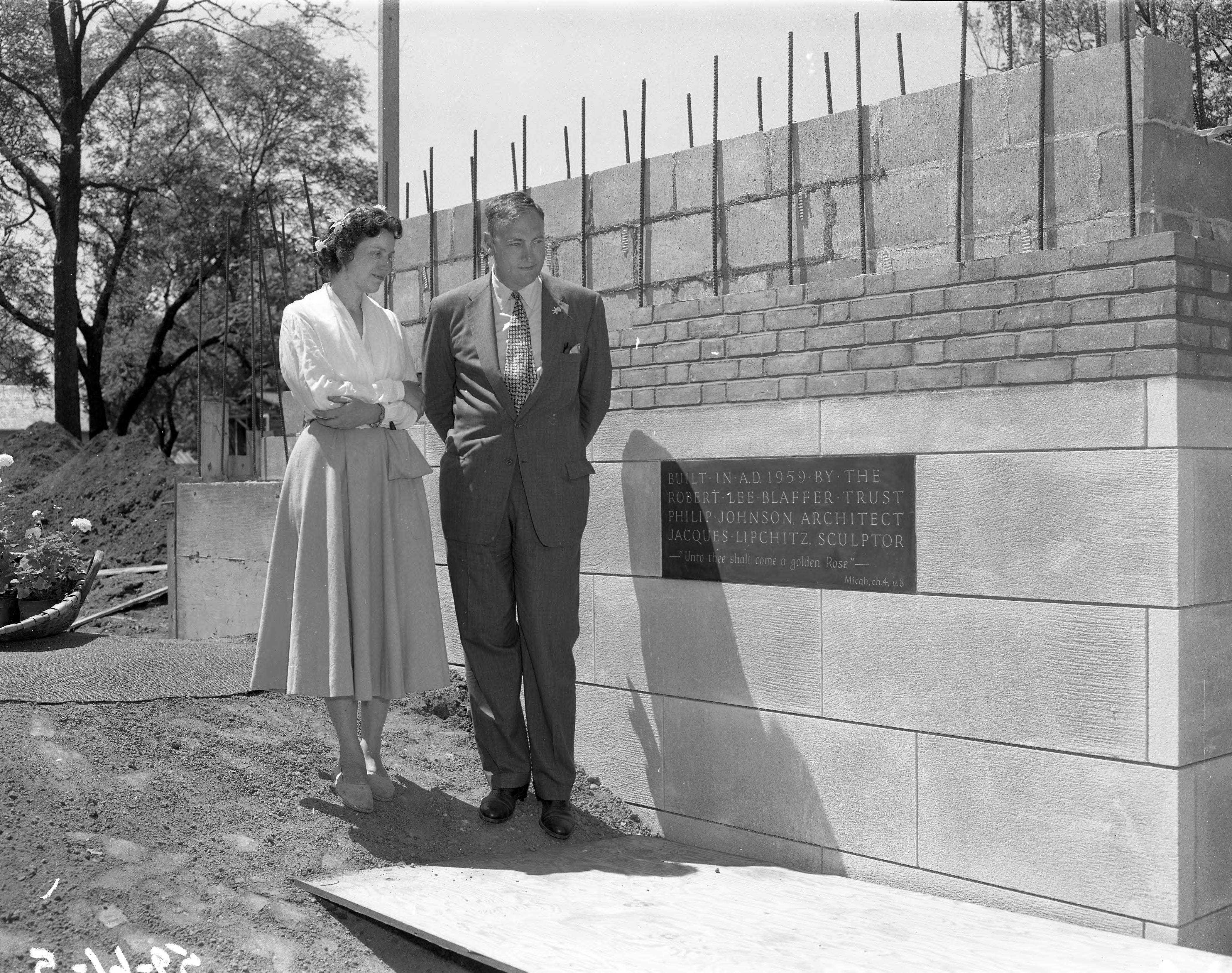 Dedication of the Roofless Church with Jane Blaffer Owen and Kenneth Dale Owen. At 420 North St., the Roofless Church was commissioned by Jane Blaffer Owen and designed by Philip Johnson. It is non-denominational, but operated under the auspices of the Episcopal Diocese of Indianapolis.