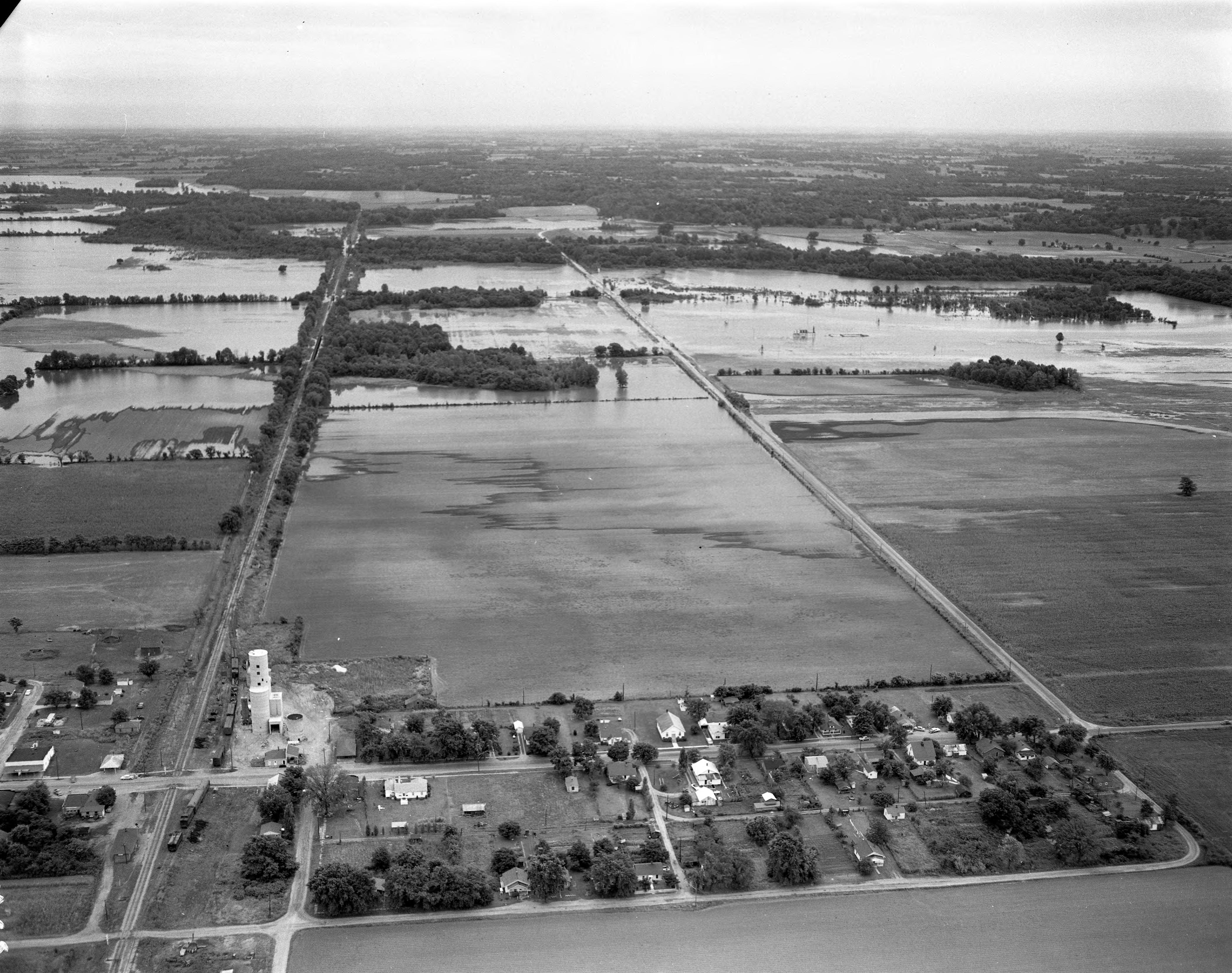 Flooding in Griffin, IN information from the July 3, 1957 issue of The Evansville Courier reported that the river was expected to crest, far above the 21 ft. level which already would have flooded fields of corn and soybeans. It was hoped that since the crest was not to take place until the following Saturday, there would be time for an all out effort to raise the levees would be successful, but since such a long stretch of the levee needed to be raised, it was thought problematical.