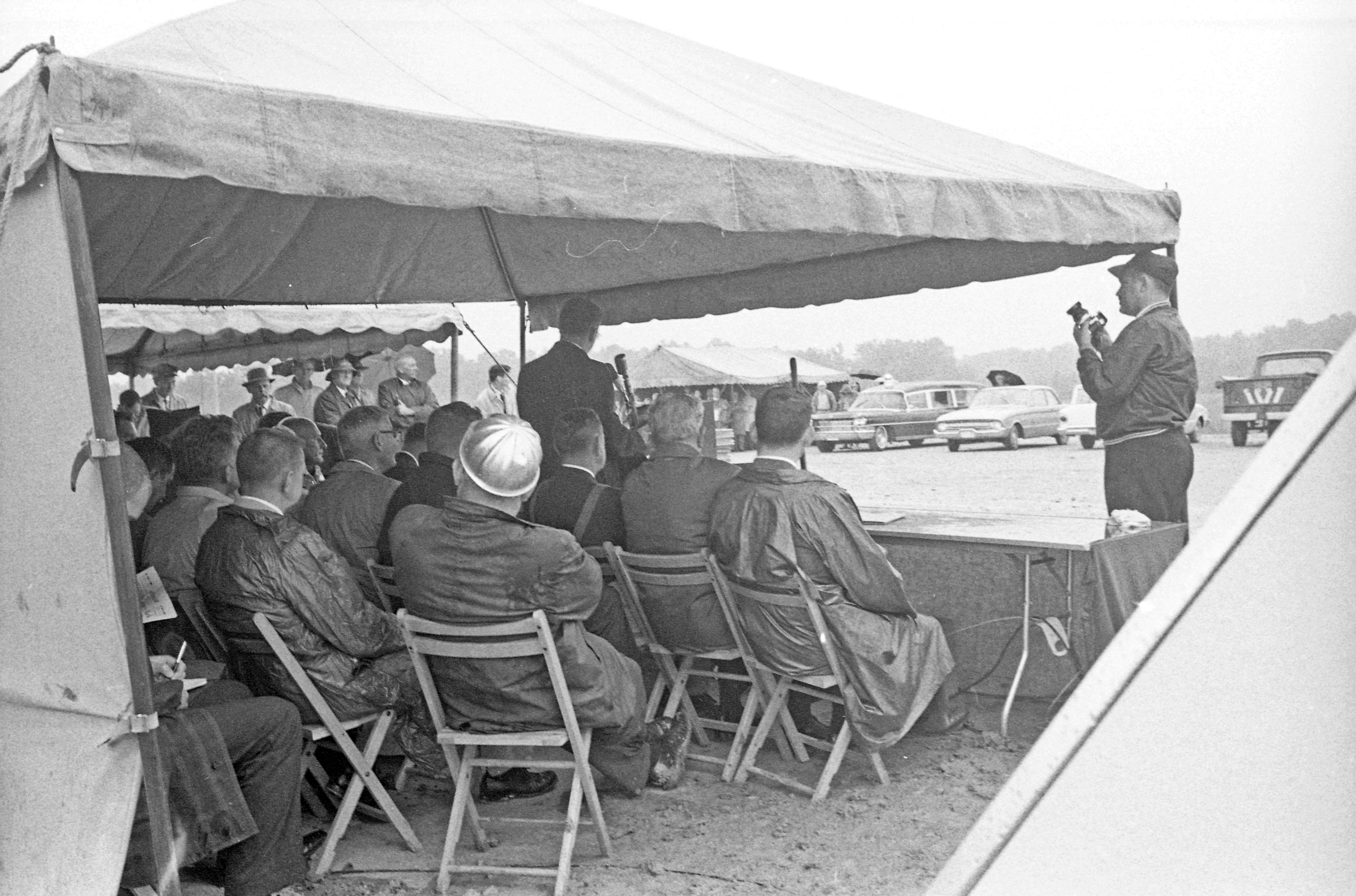 Ground breaking on Uniontown Lock and Dam. This dam replaced the lock and dams numbers 48 and 49. The facility is in Posey County, Indiana and Union County, Kentucky. It was the 17th lock and dam built on the Ohio River. It was renamed the John T. Myers Lock and Dam in 1996.