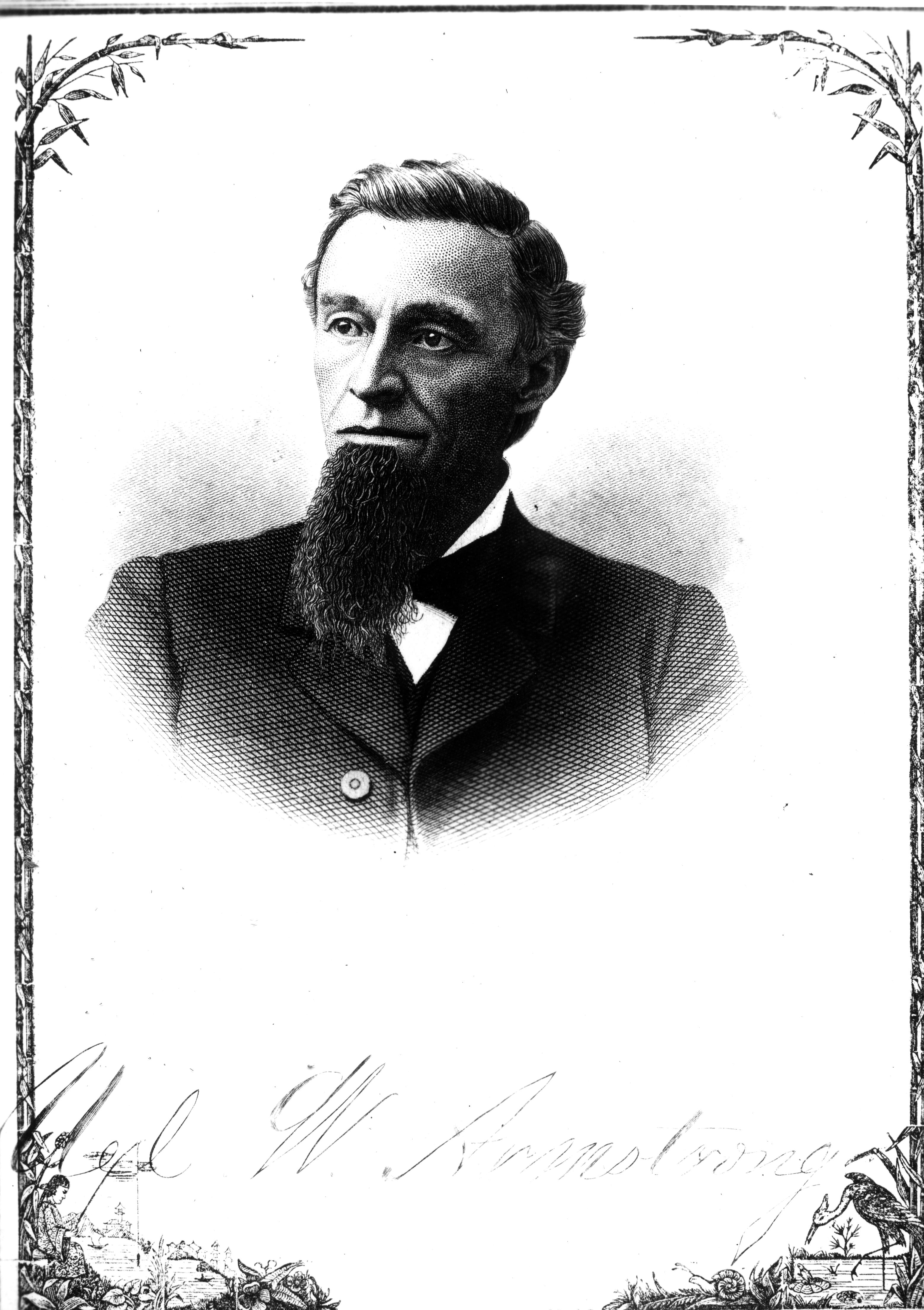 Believed to be Uel W. Armstrong (1832-1899), buried in Oak Hill Cemetery. He was president of the Armstrong Brothers Furniture Company. Circa 1889 he bought a mansion at 715 Upper Water St., in 1904 this building (no longer standing) became Evansville's first museum.