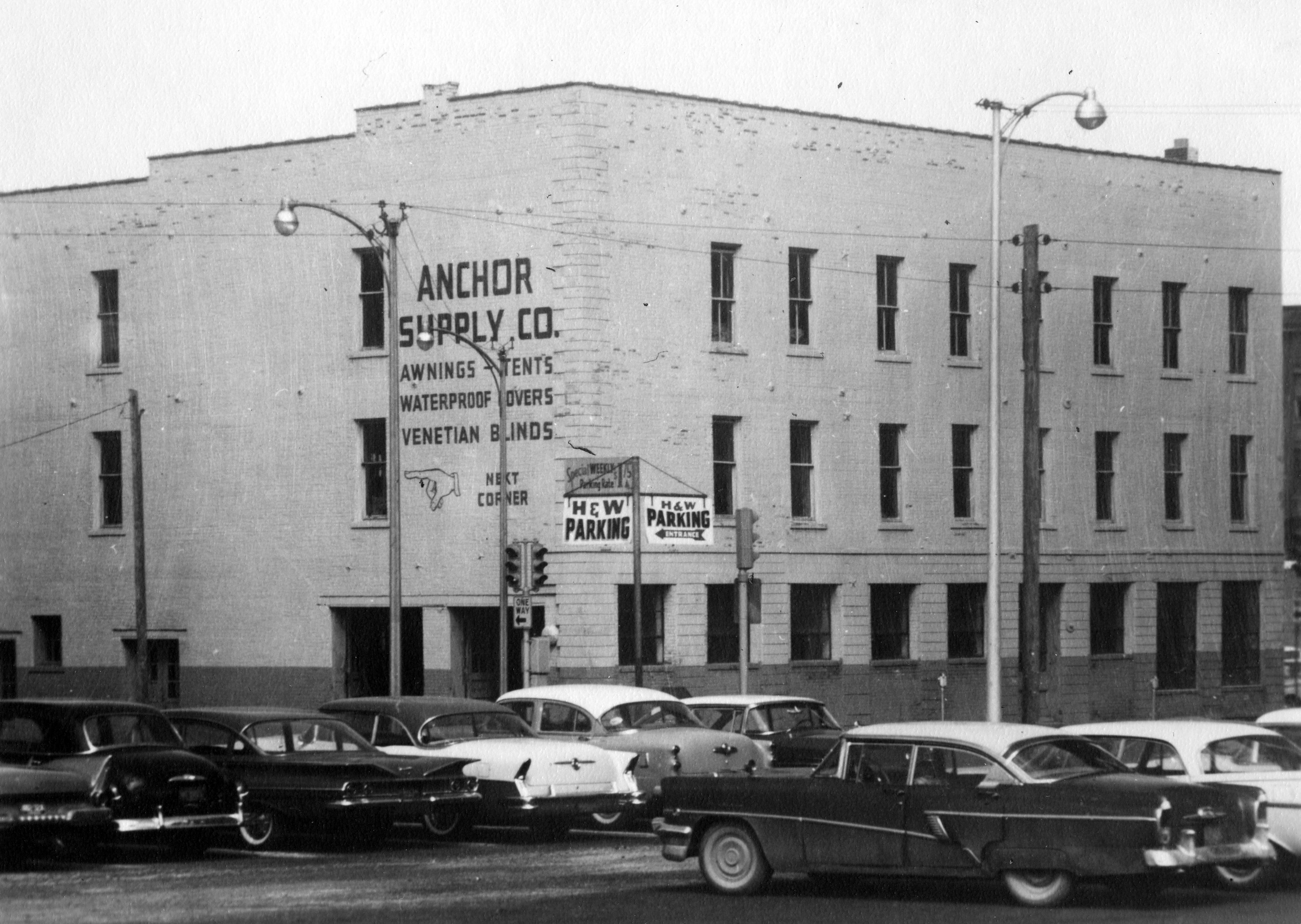 Anchor Supply Company at 121 NW Riverside Dr., formerly 100-6 Upper Water St. Built in 1908, although the business pre-dates this by about 10 years, the building was expanded circa 1920. It was heavily damaged in the 1937 flood and rebuilt, then razed 1969-1970.