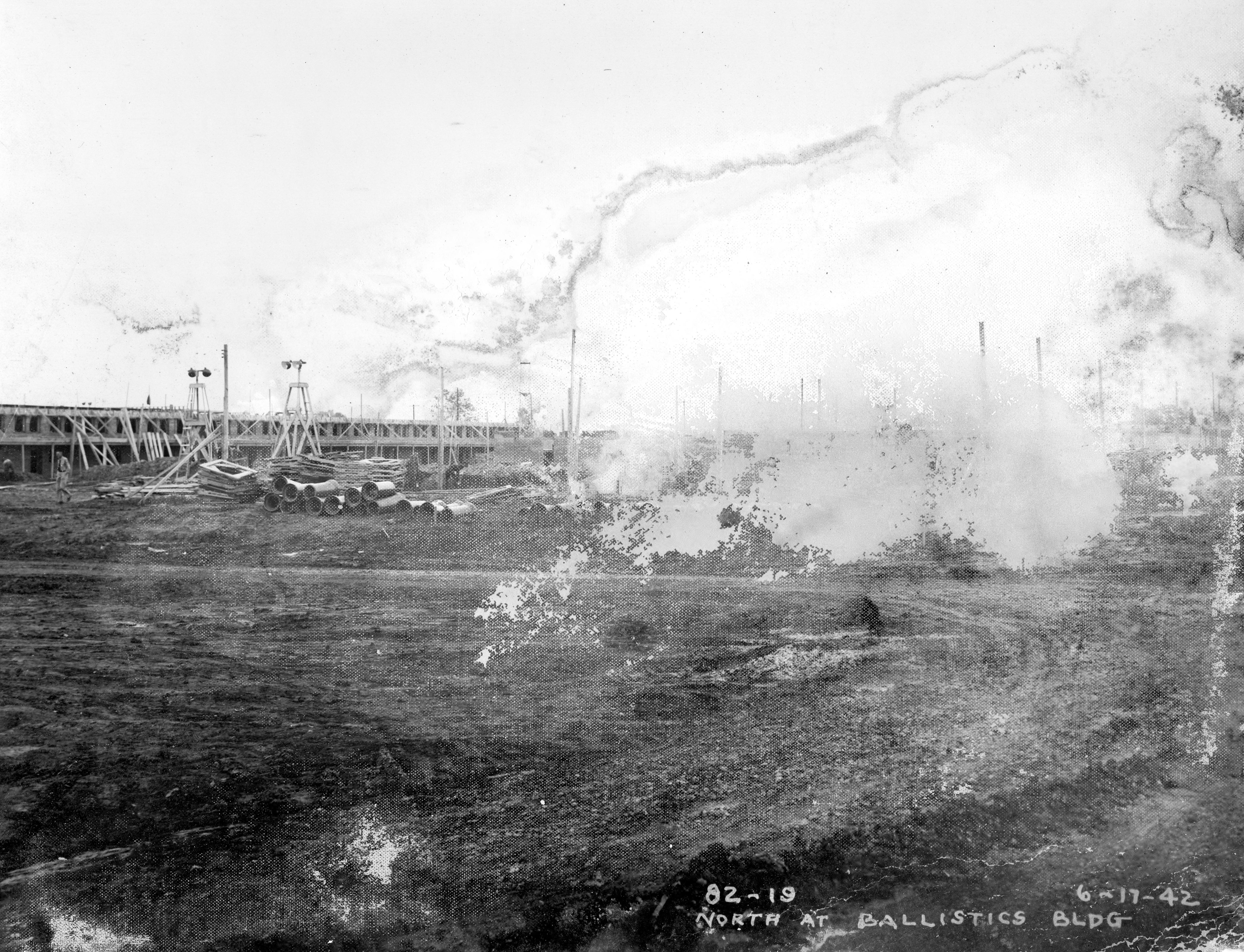 Looking north at ballistics building under construction at the Evansville Ordnance Plant at the Chrysler plant at 1625 N. Garvin St.