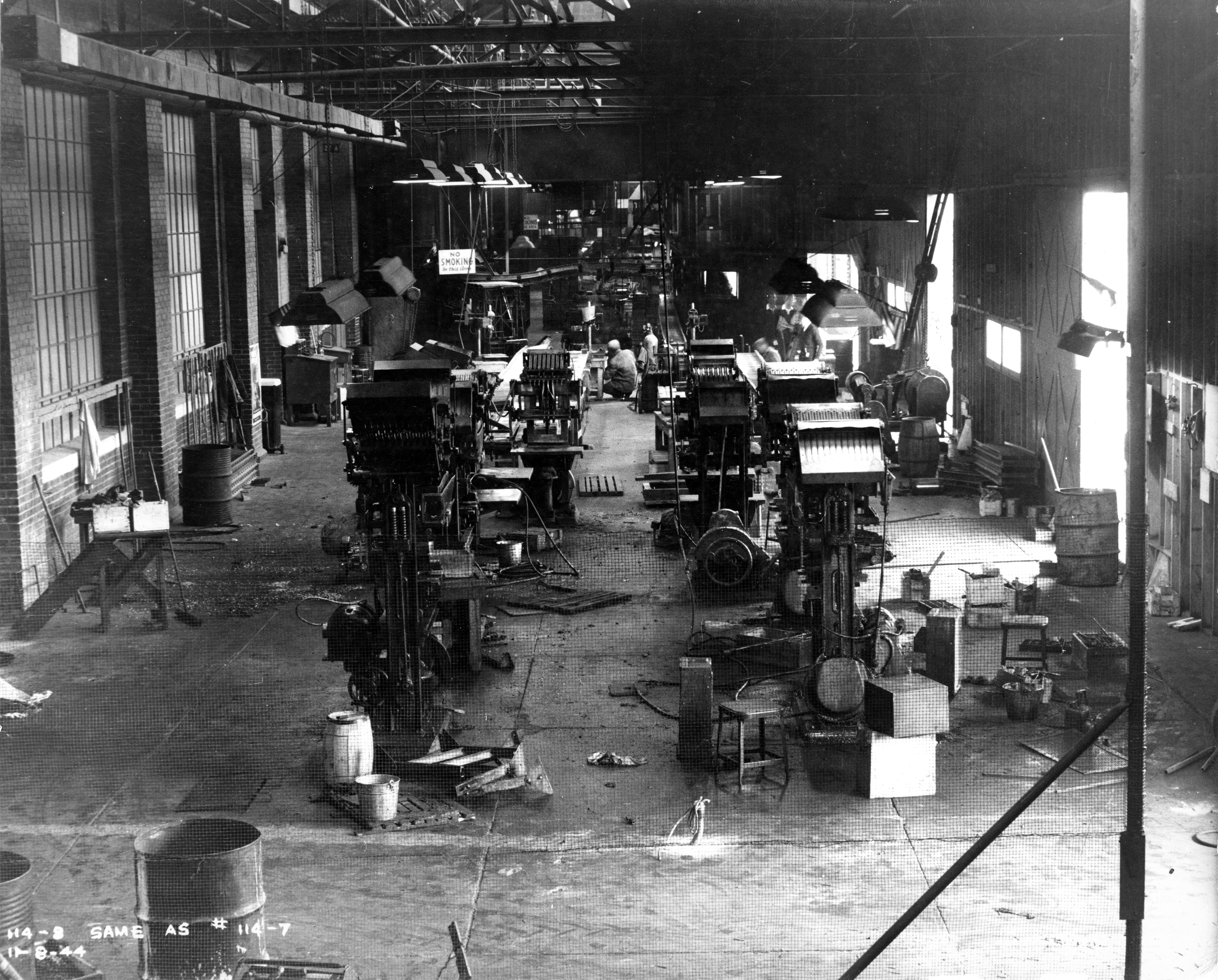 General view of boxing department during tear down at the Evansville Ordnance Plant at the Chrysler plant at 1625 N. Garvin St.