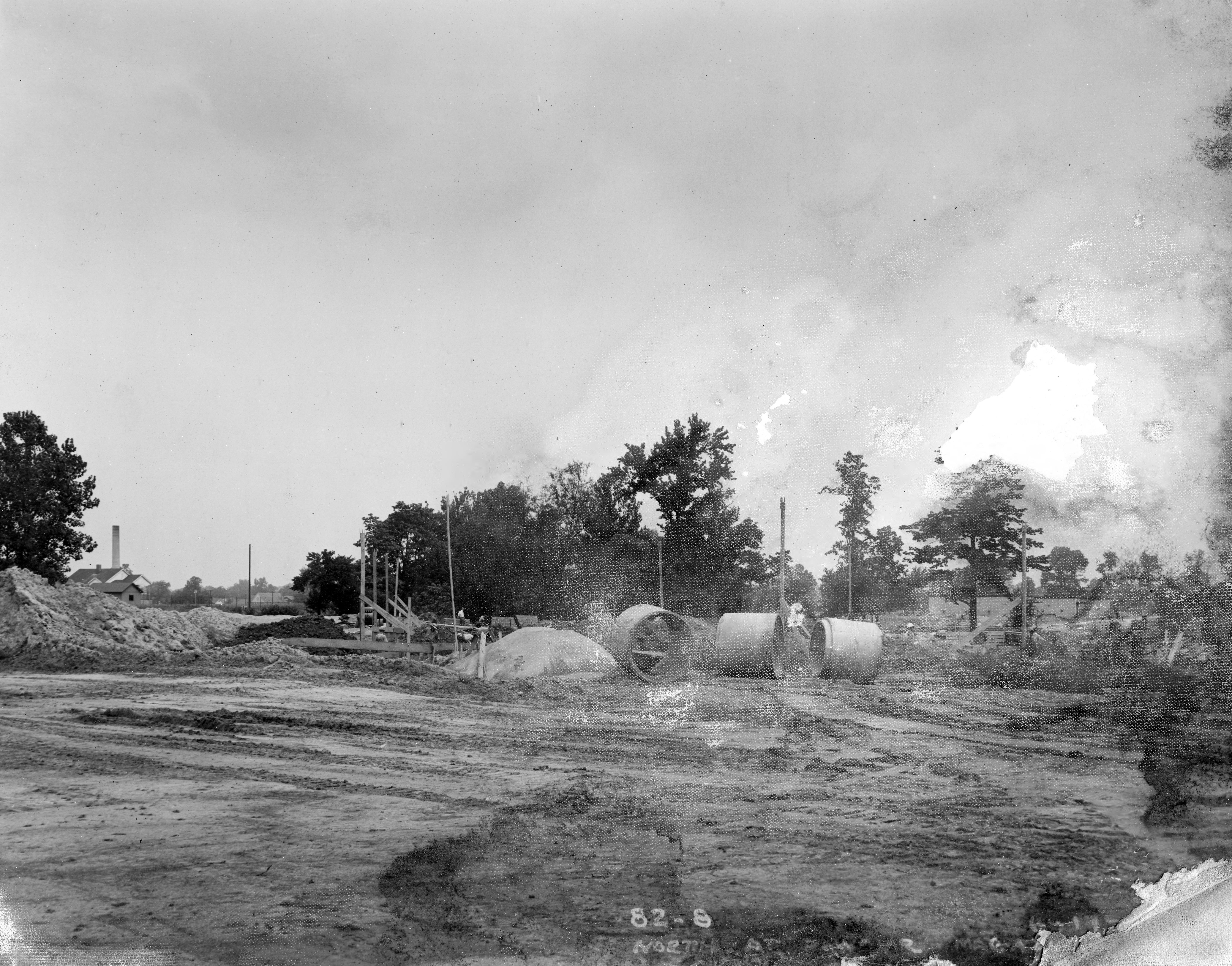 Looking north at powder manufacturing building under construction at the Evansville Ordnance Plant at the Chrysler plant at 1625 N. Garvin St.