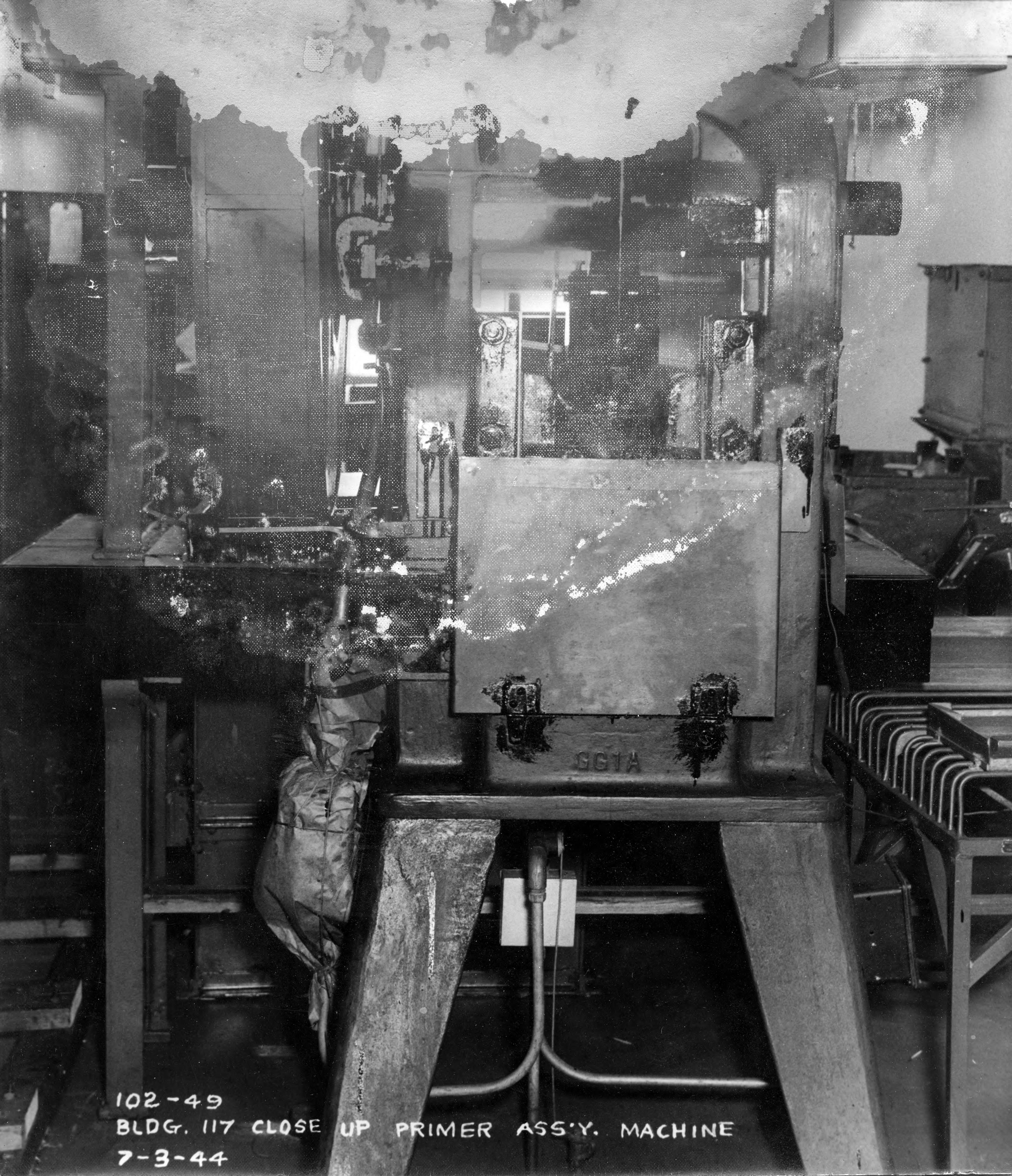 Close up of building #117 primer assembly machine at the Evansville Ordnance Plant at the Chrysler plant at 1625 N. Garvin St.