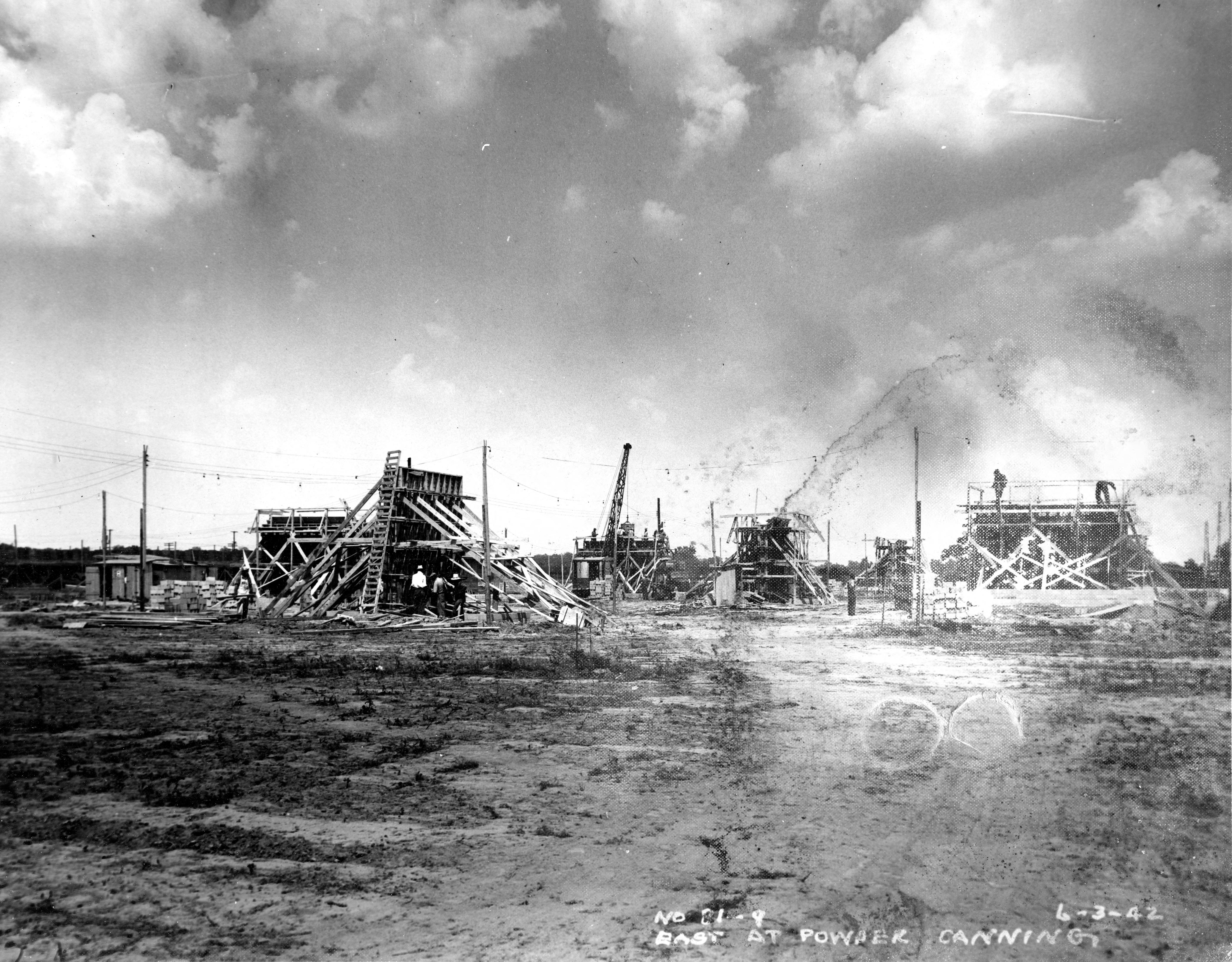 Looking east of powder canning building under construction at the Evansville Ordnance Plant at the Chrysler plant at 1625 N. Garvin St.