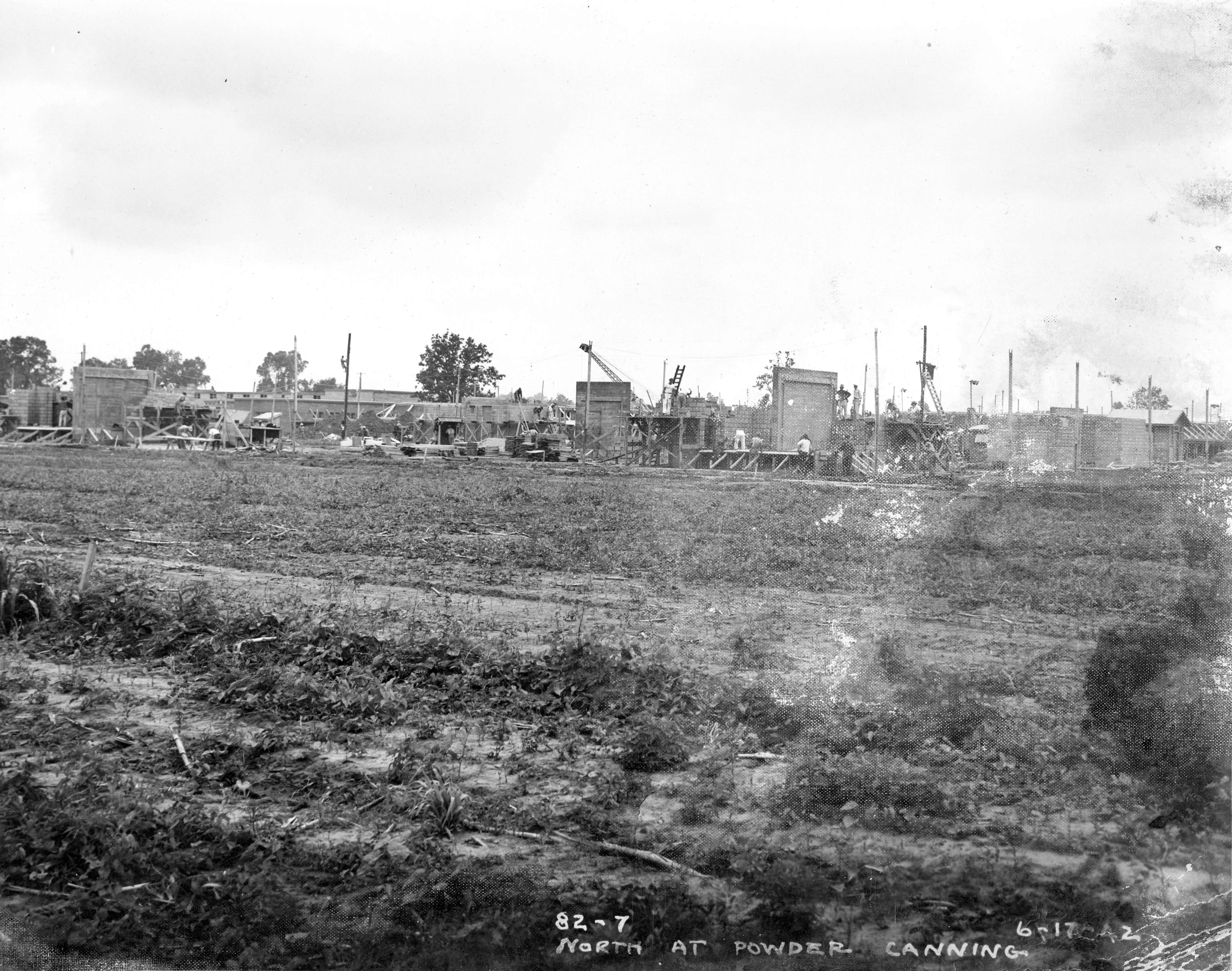 Looking north at powder canning building under construction at the Evansville Ordnance Plant at the Chrysler plant at 1625 N. Garvin St.