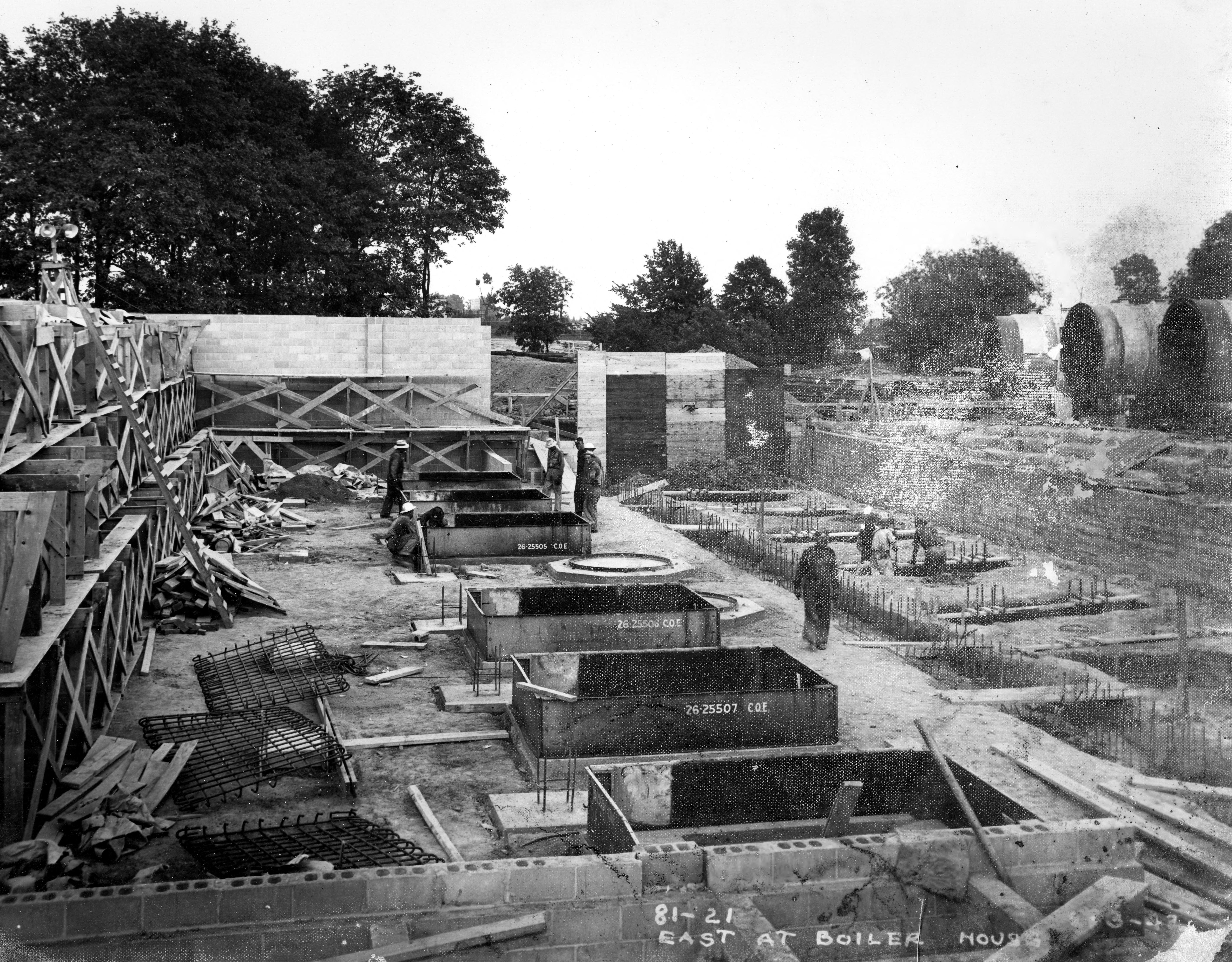 Looking east at boiler house under construction at the Evansville Ordnance Plant at the Chrysler plant at 1625 N. Garvin St.