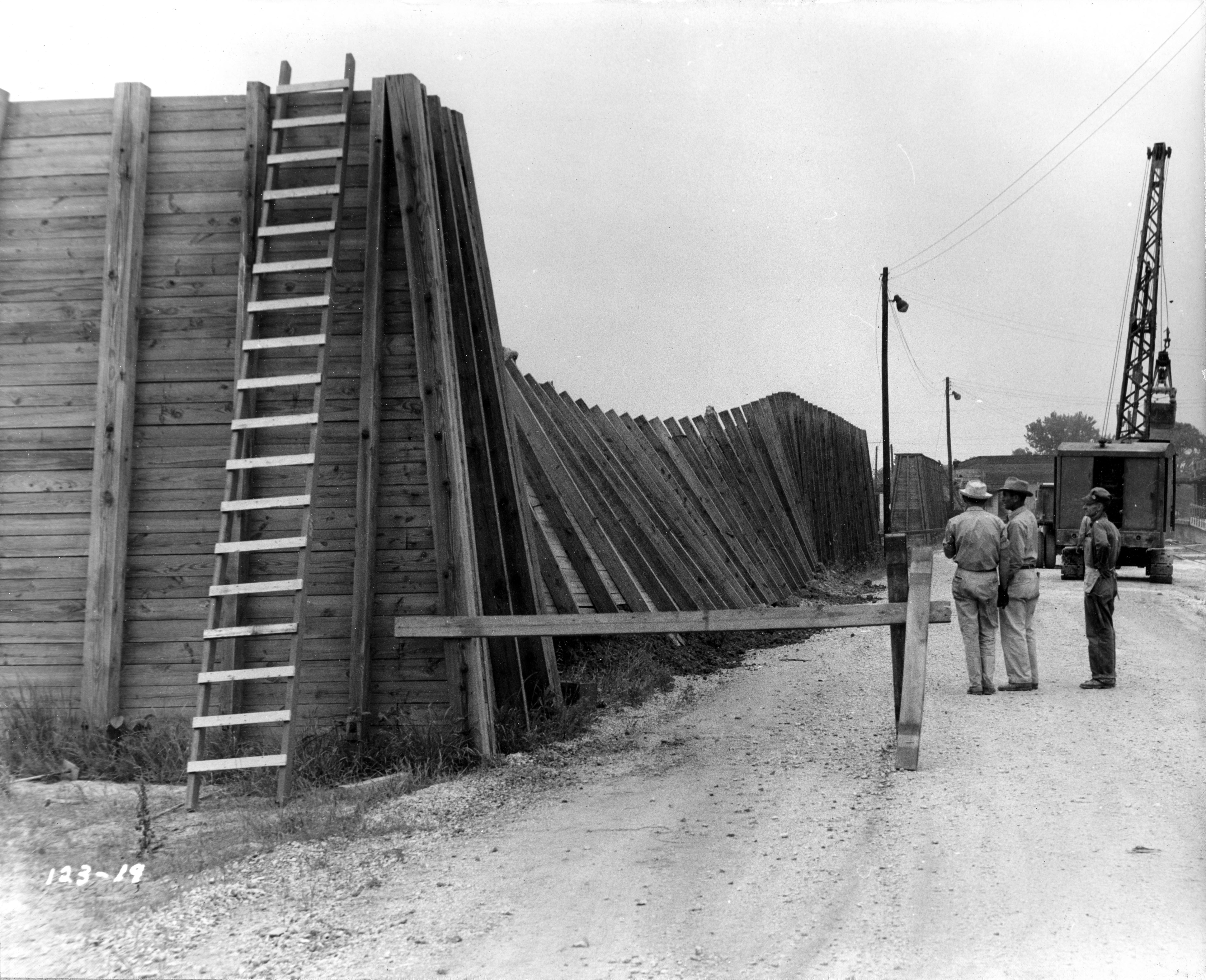 Men removing of barricade in restricted area at the Evansville Ordnance Plant at the Chrysler plant at 1625 N. Garvin St.