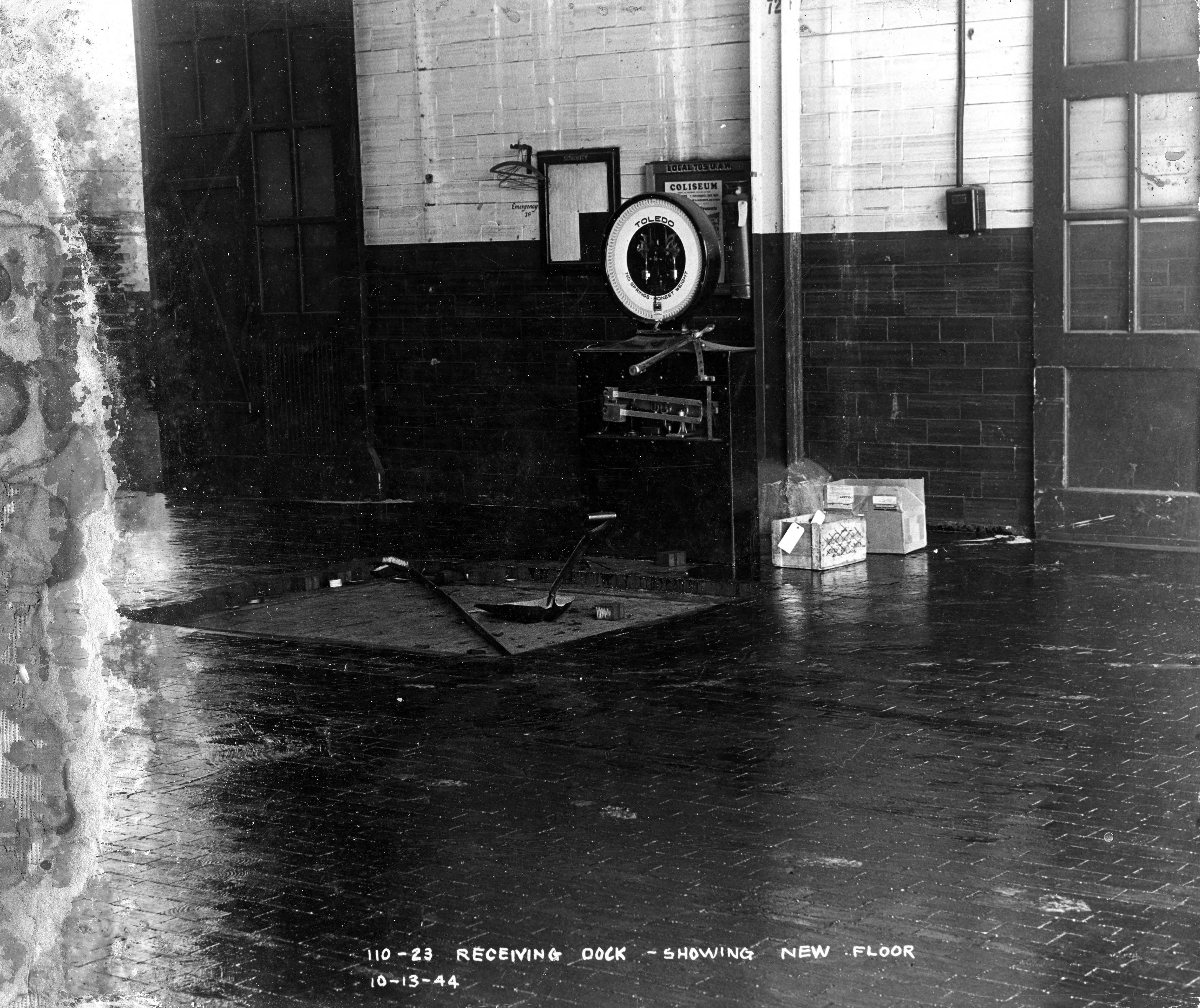 Receiving dock, showing new floor at the Evansville Ordnance Plant at the Chrysler plant at 1625 N. Garvin St.
