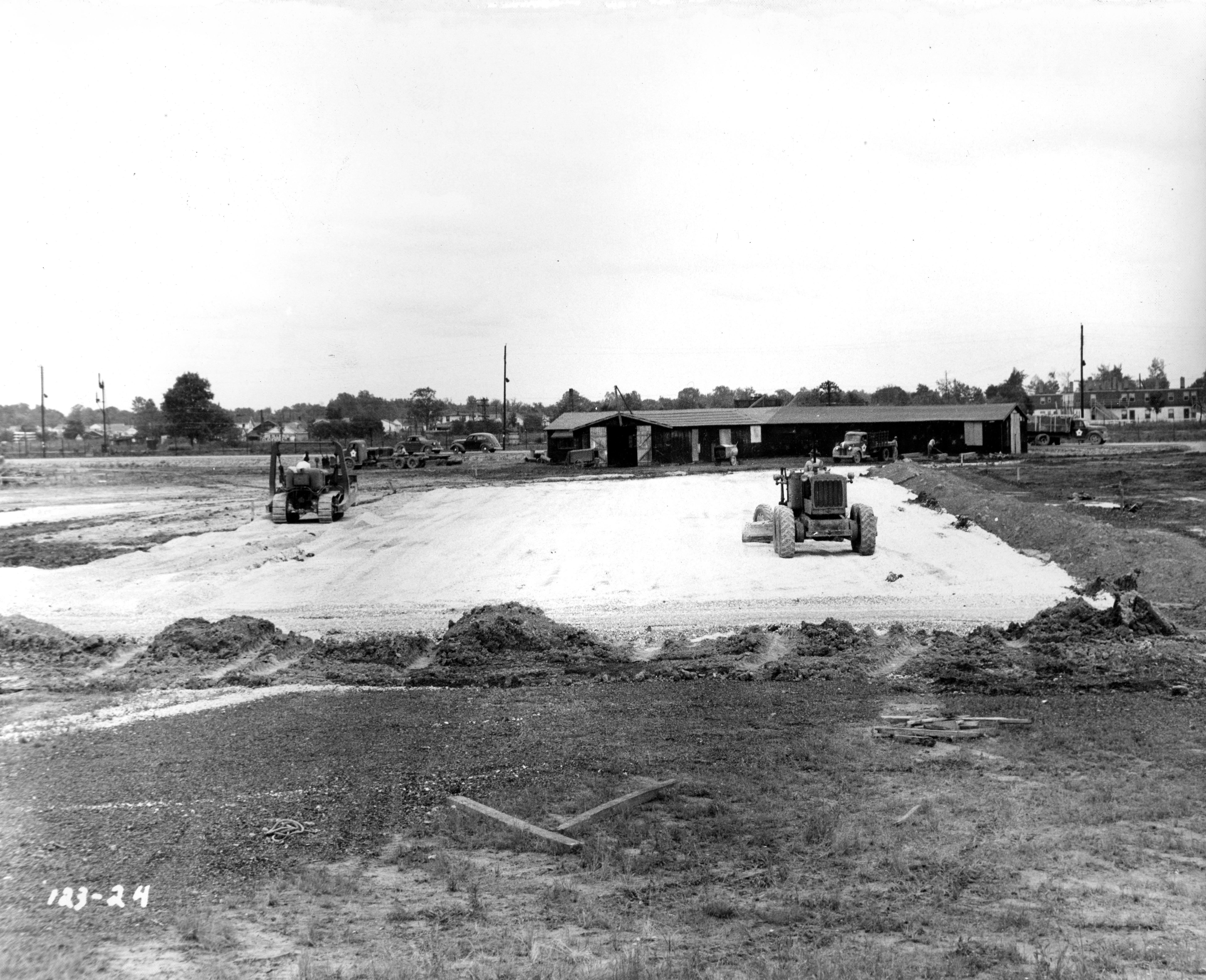 Goop storage area looking straight east at the Evansville Ordnance Plant at the Chrysler plant at 1625 N. Garvin St. Goop is incendiary petroleum-based fuels.