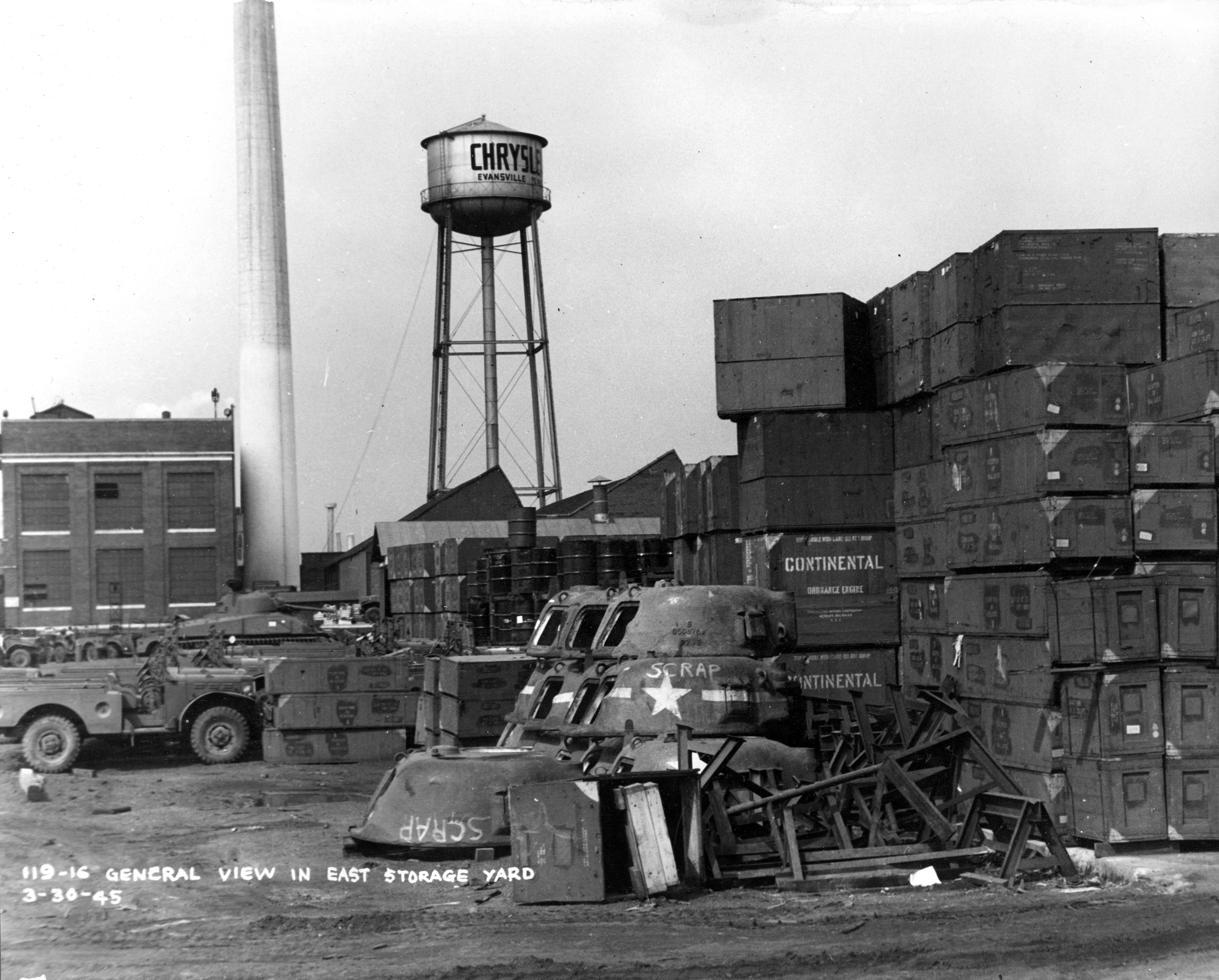 General view in east storage yard at the Evansville Ordnance Plant at the Chrysler plant at 1625 N. Garvin St.