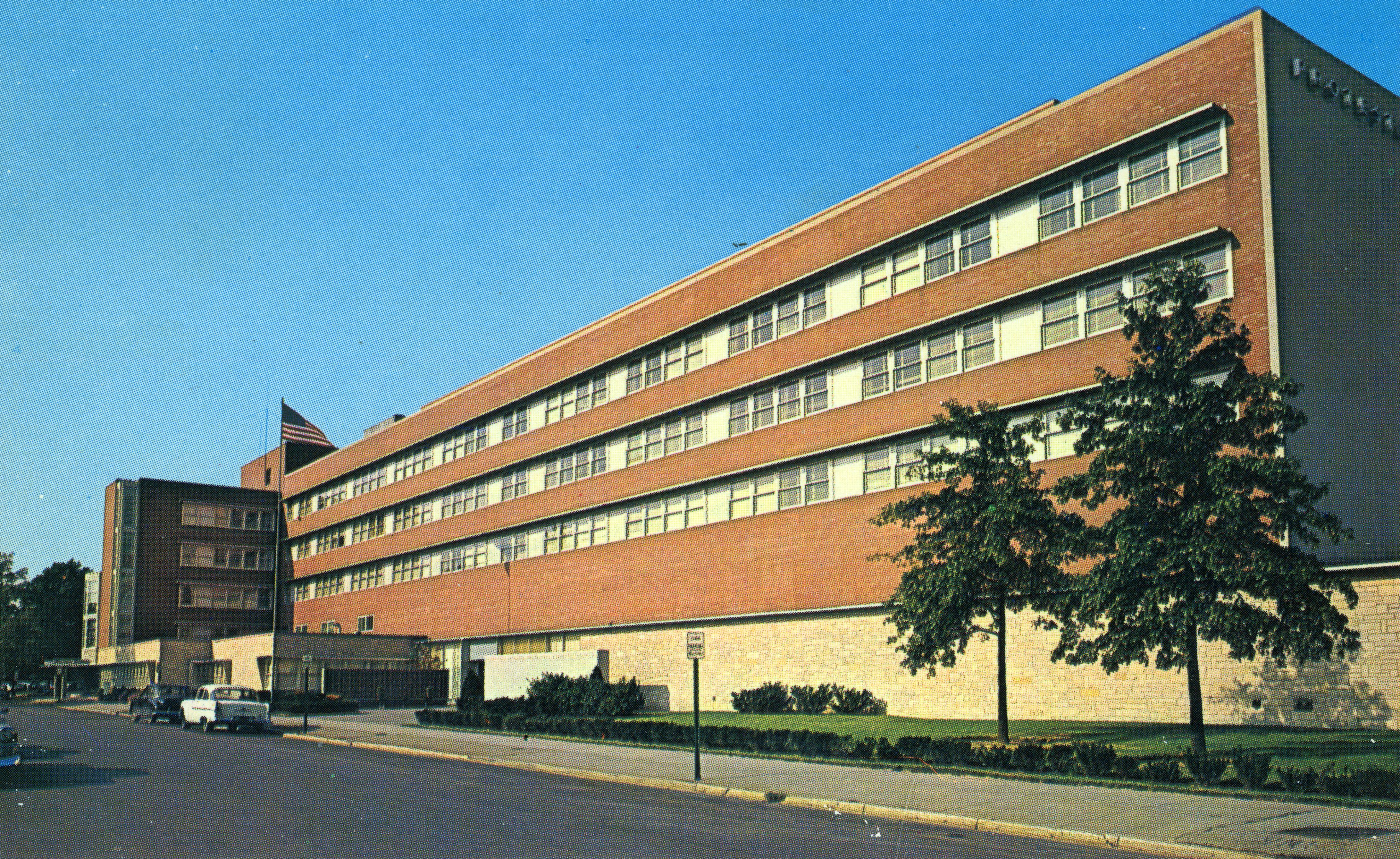 Protestant Deaconess Home Hospital at 604 Mary St., commonly called Deaconess. In 1893, the home of Major Byron Parsons, a Civil War veteran, at Mary and Iowa was converted into the first 19-bed hospital. In 1897 this was moved to the back of the lot and a new building was built. A three-story brick hospital was completed in 1899 and was celebrated as one of the most impressive Deaconess institutions in the country. The new Protestant Deaconess Hospital had beds for more than 60 patients. It boasted three operating rooms with hot and cold sterilized water and good lighting, so that operations could be performed with the same degree of safety day or night. (https://www.deaconess.com/About-Us/Our-History) Additions and changes occurred over the years, to the point that by 1948 every part of the original structure was subsumed and what is seen here was no longer visible or identifiable. In the early 1970s nearly all the original building was demolished to make room for a new facility, now covering some 20 city blocks.