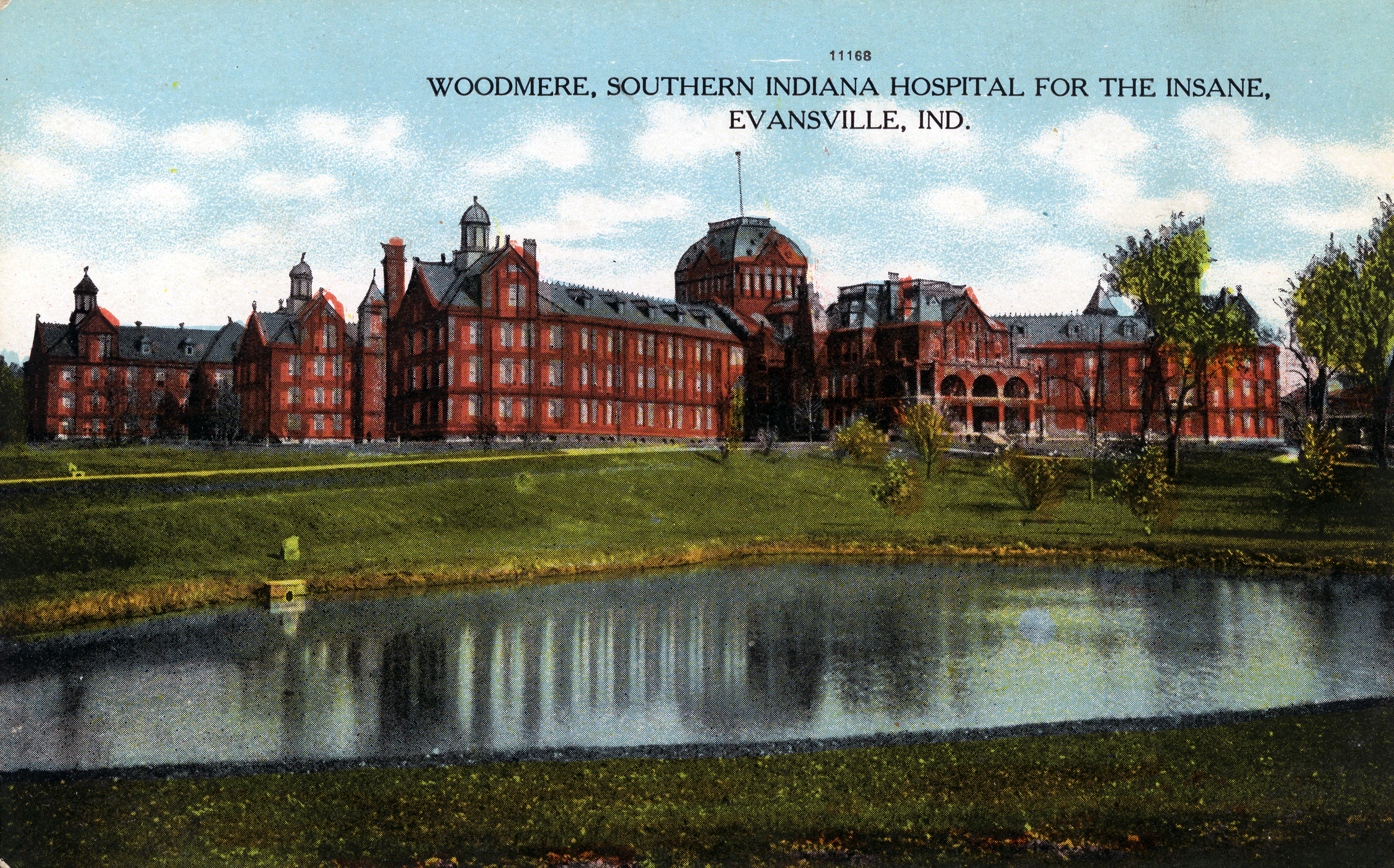 Woodmere Hospital, a.k.a. the Southern Indiana Hospital for Insane at 3400 Lincoln Ave., originally Newburgh Rd. (3 miles from the city, at that time). In 1883, the Indiana General Assembly authorized the construction of the Southern Indiana Hospital for the Insane. The hospital was built on 160 acres of land on Newburgh Road, now known as Lincoln Avenue, between Evansville and Newburgh. The hospital saw its first patients admitted in October 1890. The campus quickly expanded, eventually holding nearly 900 acres of what is now the East Side of Evansville, including the land eventually repurposed for Robert Stadium, St. Mary�s Medical Center and Wesselman�s Woods Nature Preserve. Using patient labor, the hospital staffed a working farm, including dairy cows, poultry and an orchard. Due to stigma, early staff unofficially took to calling the facility Woodmere, meaning 'tranquility in the forest.� In 1927, the General Assembly officially changed the name to the Evansville State Hospital. On February 9, 1943, a fire set by an attendant destroyed much of the original building, leaving at least two staff members dead and six patients missing. (https://www.courierpress.com/story/life/columnists/2017/03/13/history-lesson-evansville-state-hospital/99005532/) In the 1950s, improvements in treatment rendered so much space unnecessary, so much of the land was sold off. A modern facility was built and in 2006, all other buildings were razed. Today the remaining land, still substantial, is used for recreational purposes by the general public.