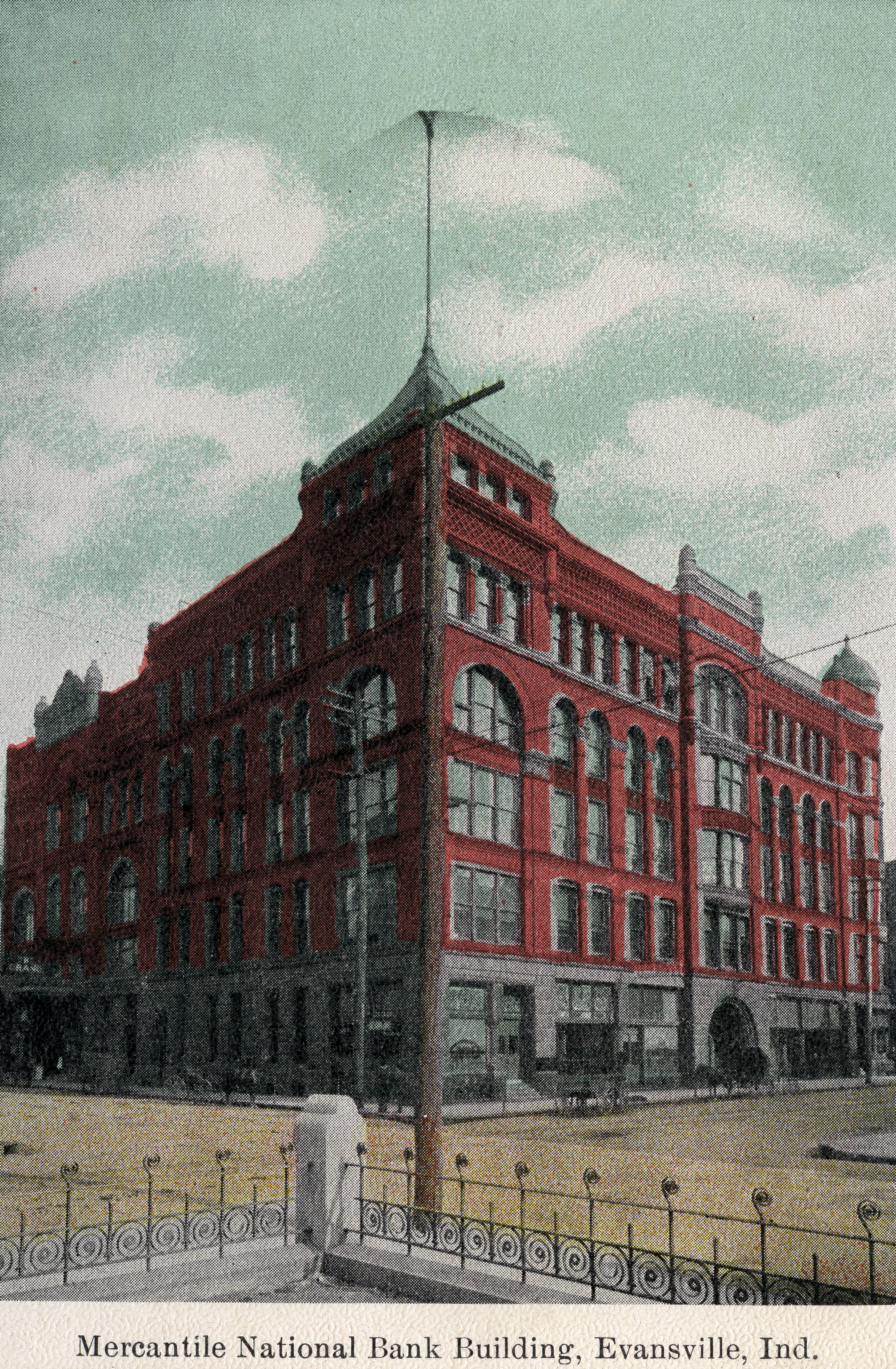 Mercantile National Bank at 19-25 NW 2nd St. at the corner with Sycamore. This was also known as the Businessmen's Association Building. Assumption Catholic Church stood on this site until it was razed circa 1889 for the construction of this building. In later years this was known as Waverly Place and the Grein Building, and housed the opera house/Grand Theatre. It was razed in the 1970s for a parking garage.