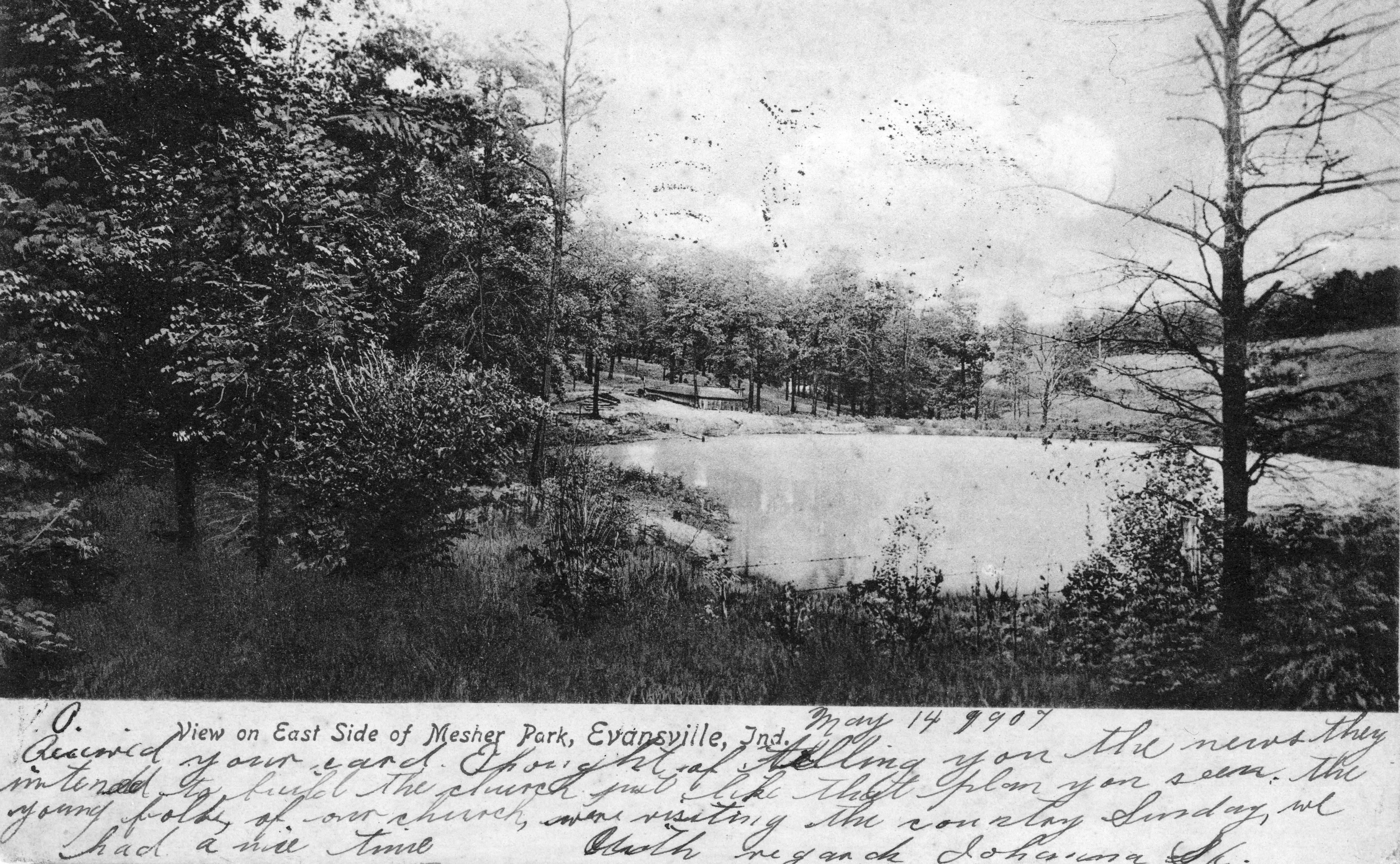 Mesker Park, a.k.a. Oak Summit Park, on west side of Mesker Park Dr. south of Wimberg Ave. It was laid out as a pleasure park in 1899 with many rides and concessions--it was the property of a street car company but open to public free. George Mesker, owner of Mesker Iron Co., donated the original 40 acres (across the street from Oak Summit Park) in 1900. In 1915 he donated $25k to acquire more land and improve the area. Around 1917 the two parks merged.