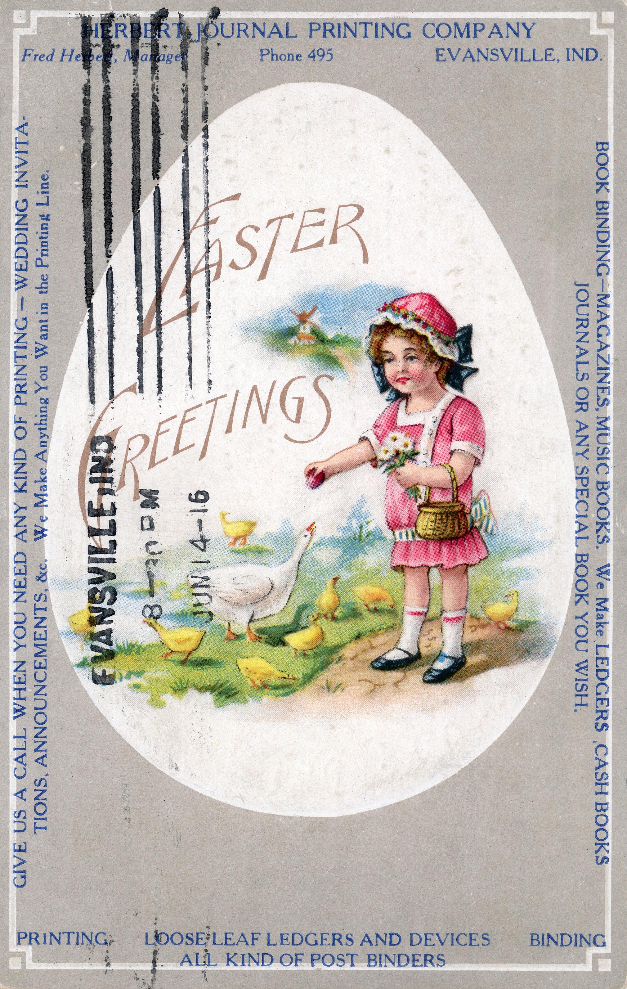 Easter card advertising the Herbert-Journal Printing Co. The company was believed to be on NW 4th St. The manager was Fred Herbert, and the business did all types of printing, bookbinding, and made ledgers, etc. This card shows evidence of a postmark.