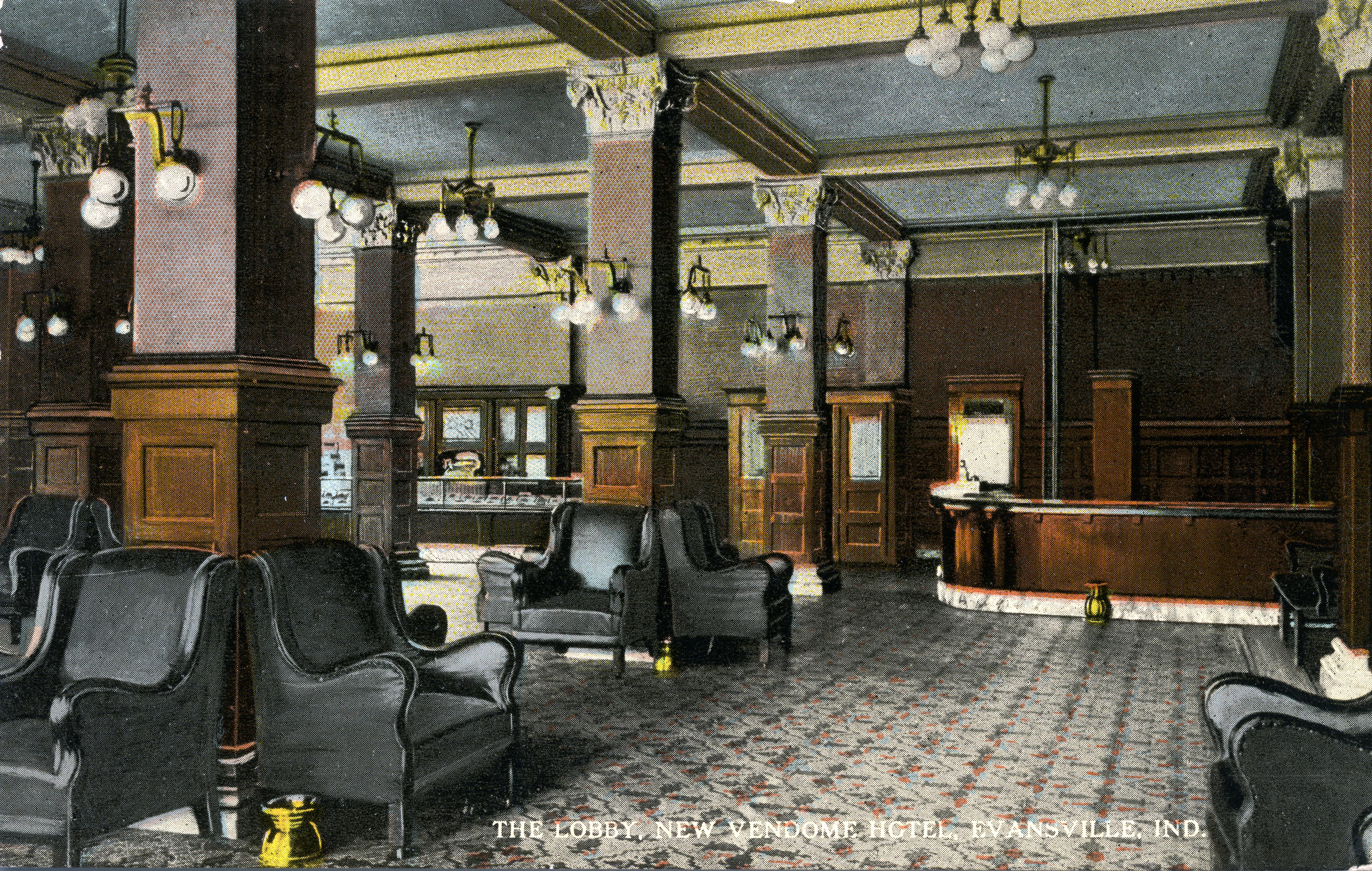 Vendome Hotel at 24-30 NW 3rd St., formerly 201-215 Upper 3rd St. The hotel was built in 1890; in 1906 it was purchased by Frederick J. Scholz and enlarged, and began to be referred to as the Vendome Hotel. The building ws razed in 1972, and Fifth Third Center now occupies this space. The president was Charles J. Scholz.
