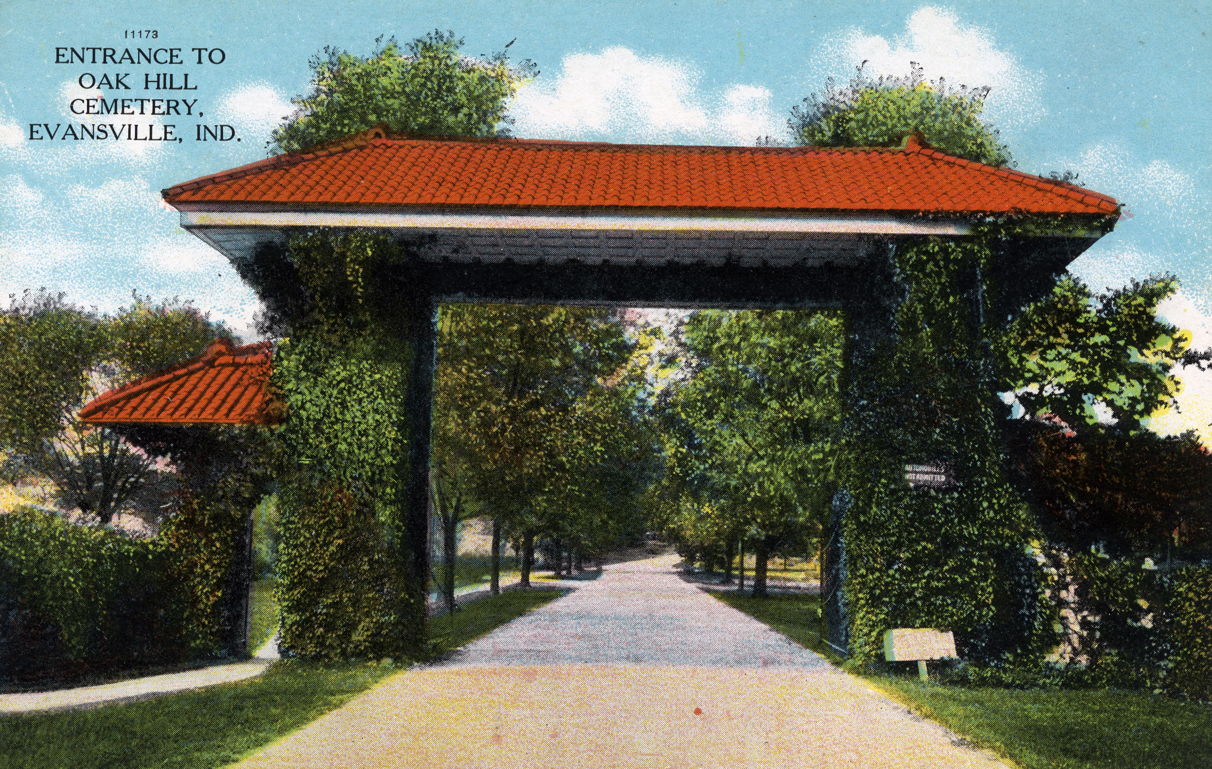 Oak Hill Cemetery at 1400 E. Virginia St. Founded in 1853, Oak Hill Cemetery has a historic 175-acre cemetery within the City of Evansville with more than 70,000 interments� Oak Hill Cemetery also features the William Halbrooks Arboretum, a Level II accredited arboretum, established in 2017, to provide a quiet and healing landscape for mourners while respecting the history and dignity of those interred at Oak Hill Cemetery. (http://www.evansvillegov.org/city/department/division.php?structureid=67)