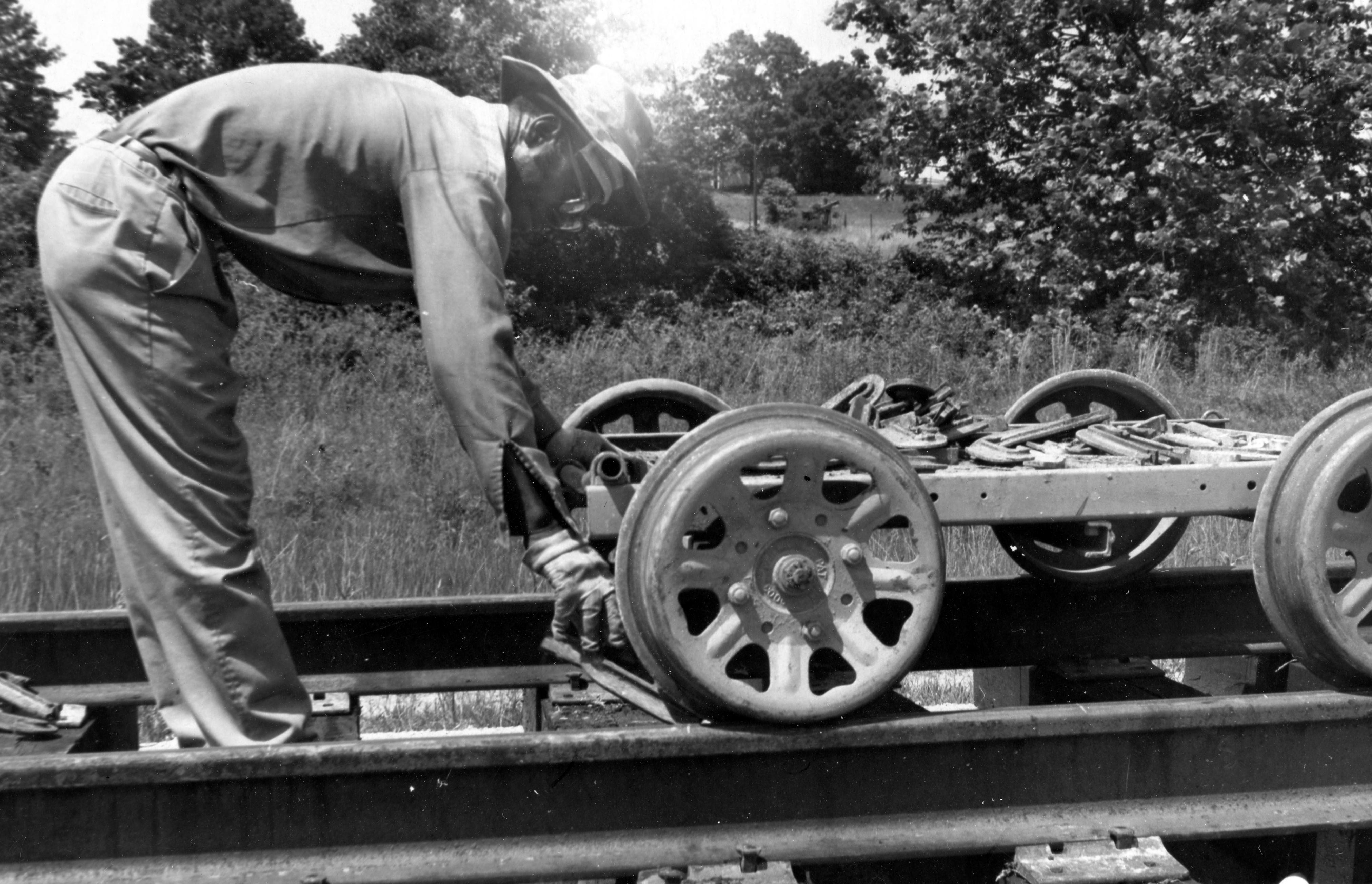 Unidentified man working on a railroad.