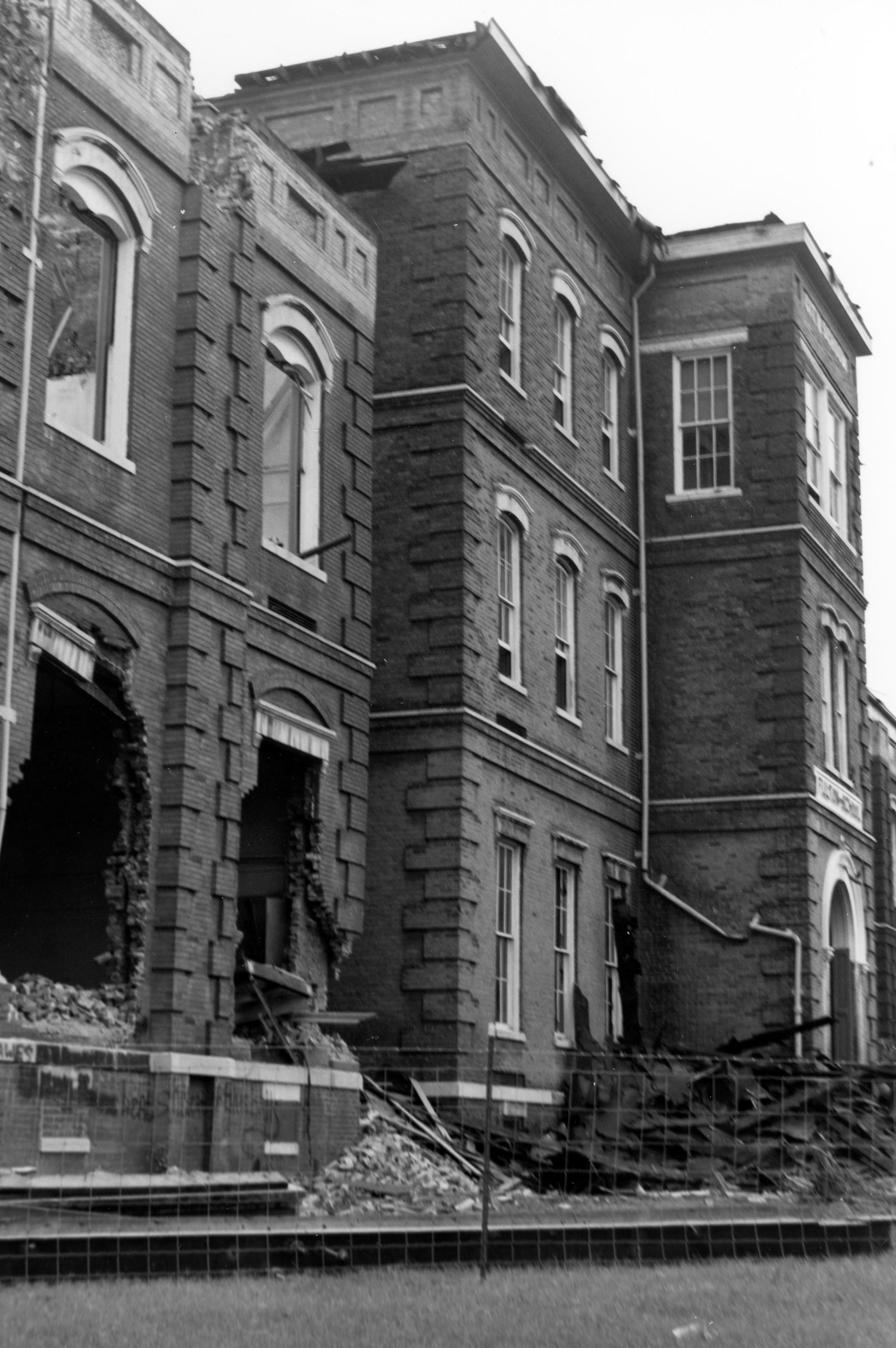 Built in 1870-71, Fulton School at 400 N Fulton Ave. was erected to serve an area of the city then called Lamasco. For its first 20 years or so it was called Fulton Ave. School. It overwent changes over the years, but was razed (as seen here) in 1973. Lewis Bakeries now stands in this location.