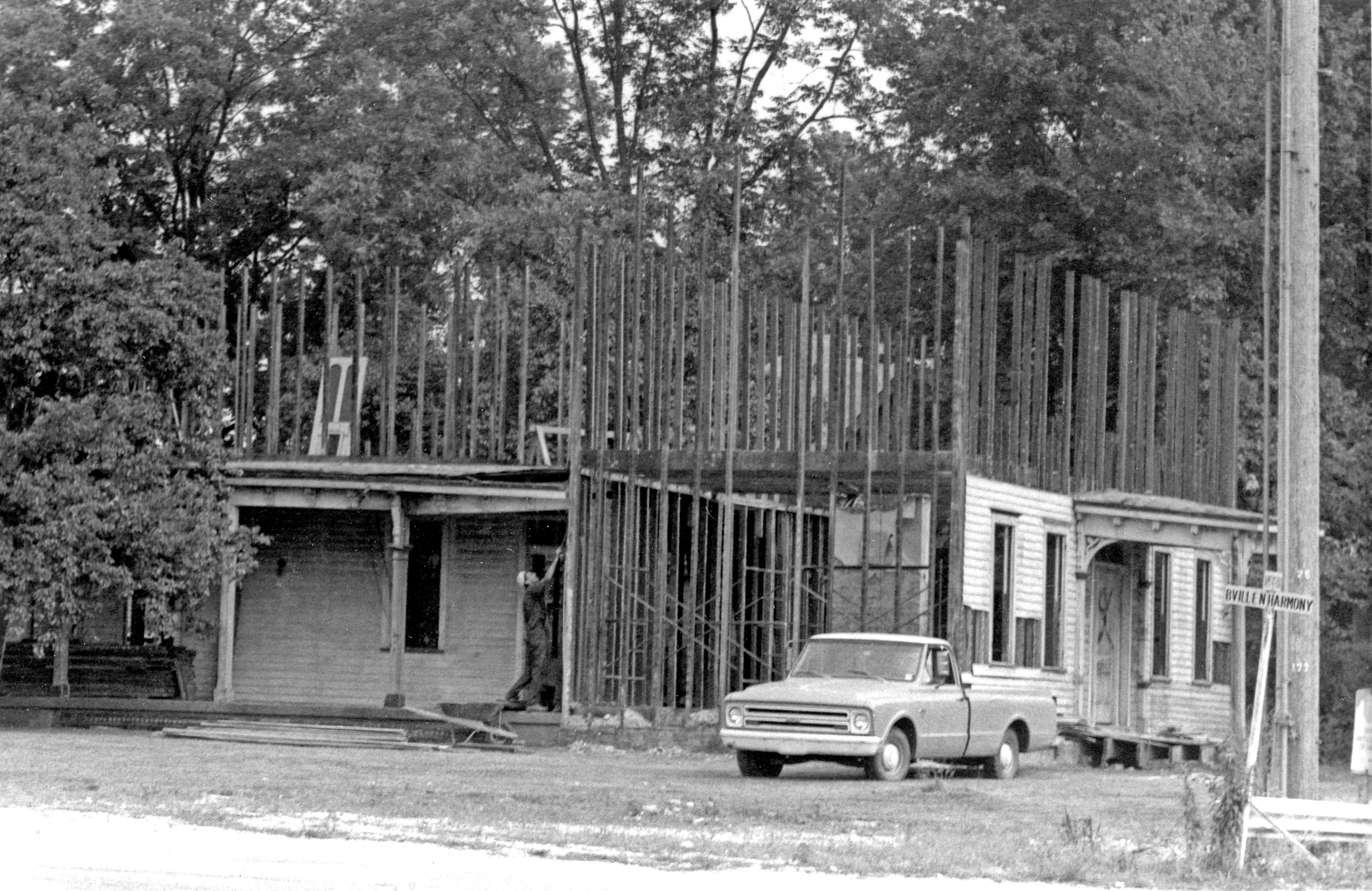 Adding a second story to and expanding a house at the corner of Boonville New Harmony Rd. and unidentified cross St.