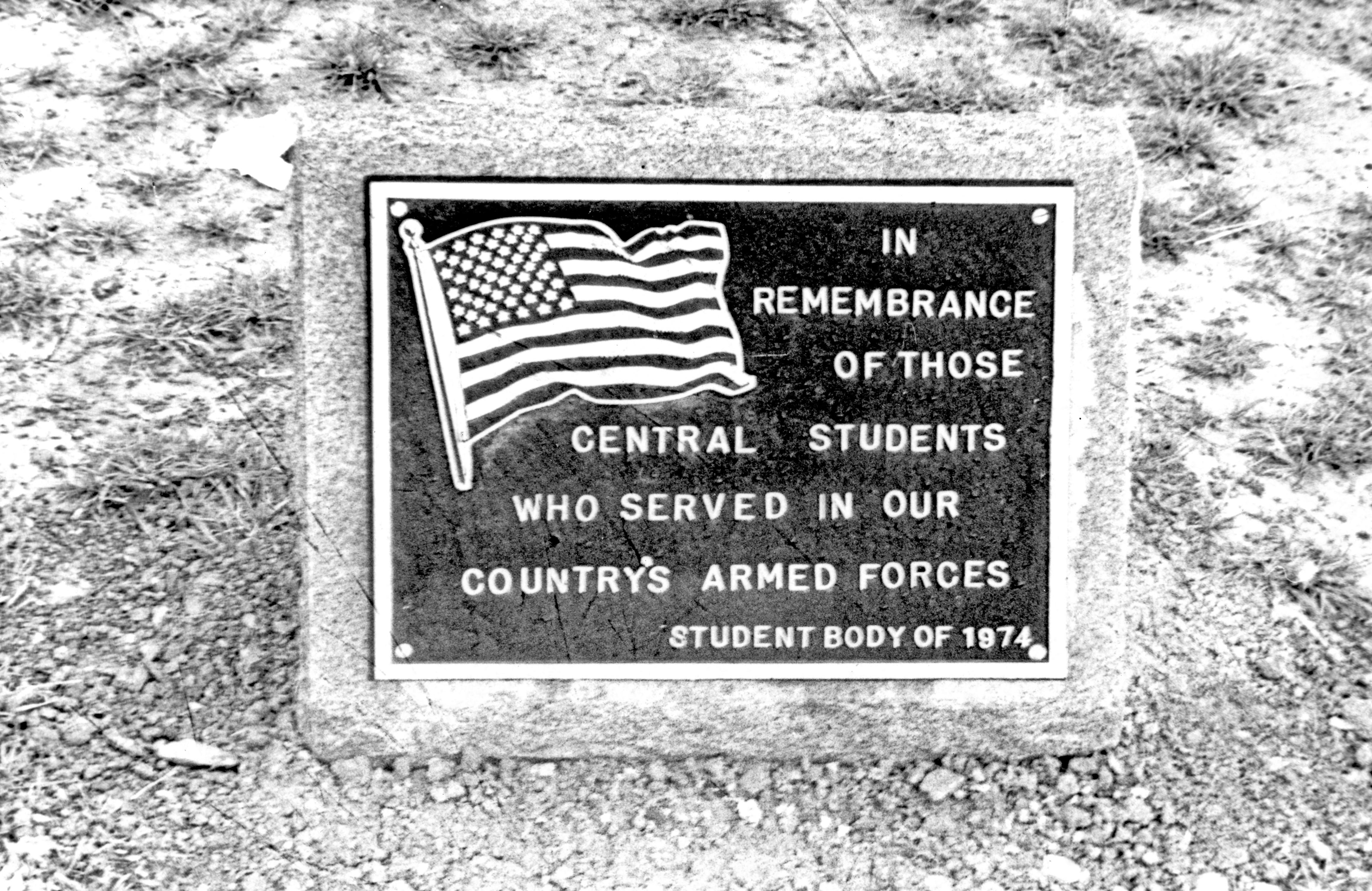 Memorial at Central High School erected by the student body of 1974, In Remembrance of Those Central Students Who Served in Our Countrys Armed Forces.