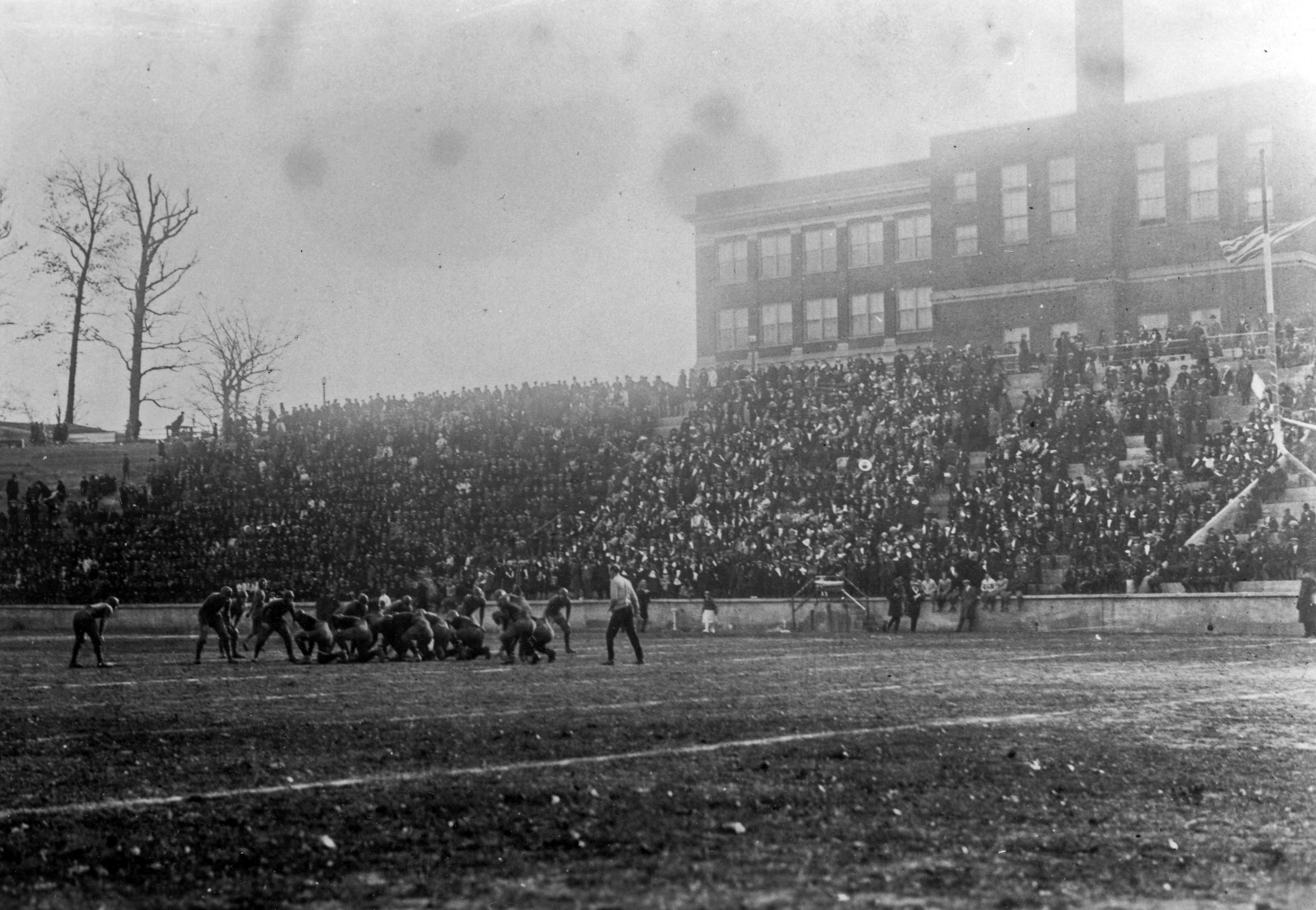 Football game at Reitz, played in its football stadium (aka Reitz Bowl) of Francis Joseph Reitz High School Bowl at 350 Dreier Blvd. Photograph from the Evansville Courier.