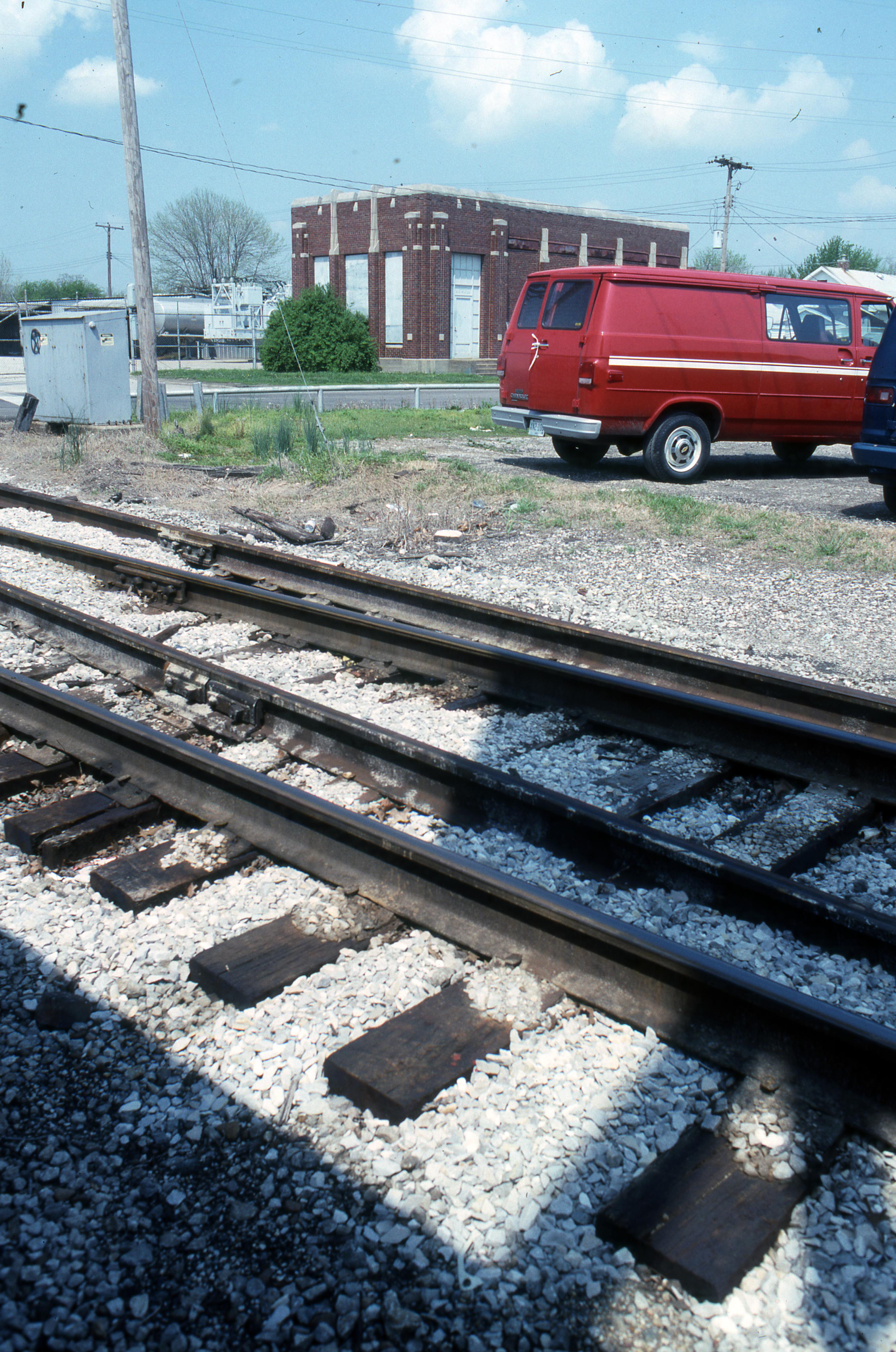Southern Indiana Gas and Electric Co. Garvin substation on Stringtown Rd. near where it intersects Garvin St. with railroad tracks in the foreground. The company was more commonly referred to by its acronym SIGECO. In 2000 a merger with another utility created the name Vectren, which is the current name. This substation building still stands but is not in use.