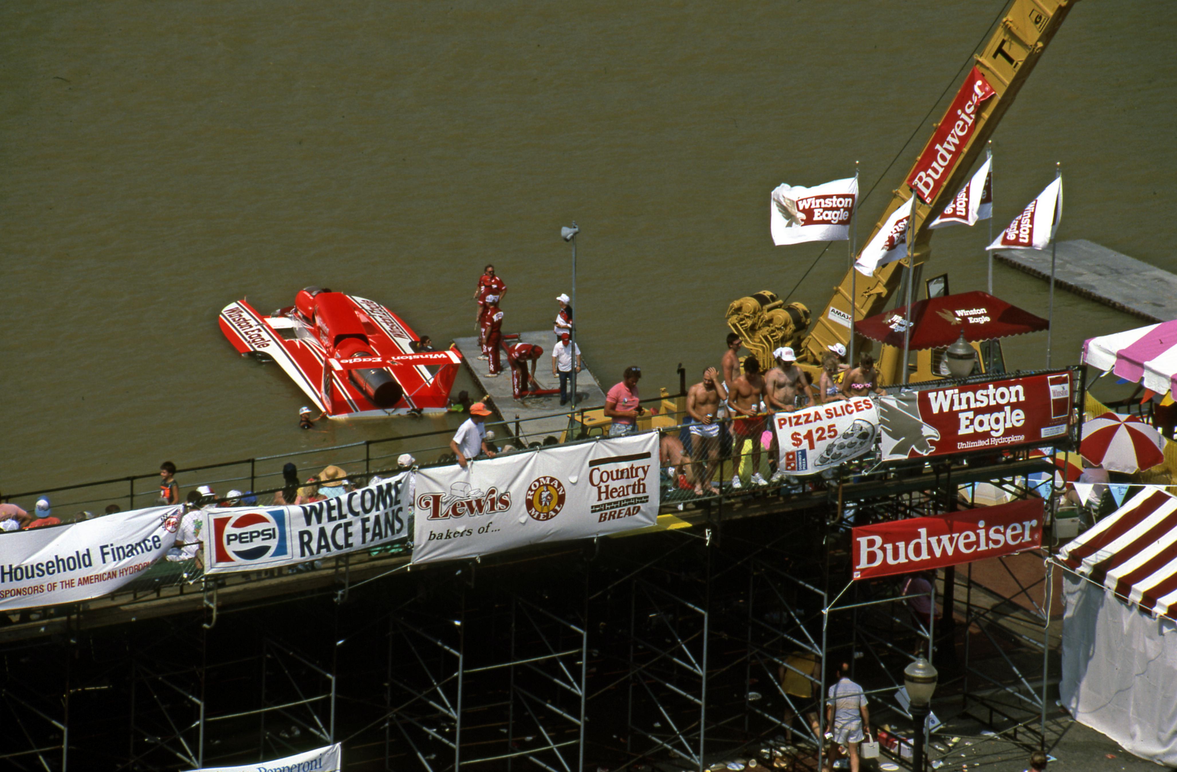 Thunder on the Ohio dock with sponsors, Thunder was an unlimited hydroplane race presented during the Freedom Festival. It has not been presented since 2009. The Evansville Freedom Festival was an annual festival in Evansville, Indiana that celebrates the Fourth of July. What began in 1970 with only a handful of events has grown to include unlimited boat racing, airshows, food booths, dances, and music culminating with a fireworks show over the Evansville riverfront. In recent years the Freedom Festival has been renamed, struggled financially, been sponsored by other organizations, and at times cancelled.