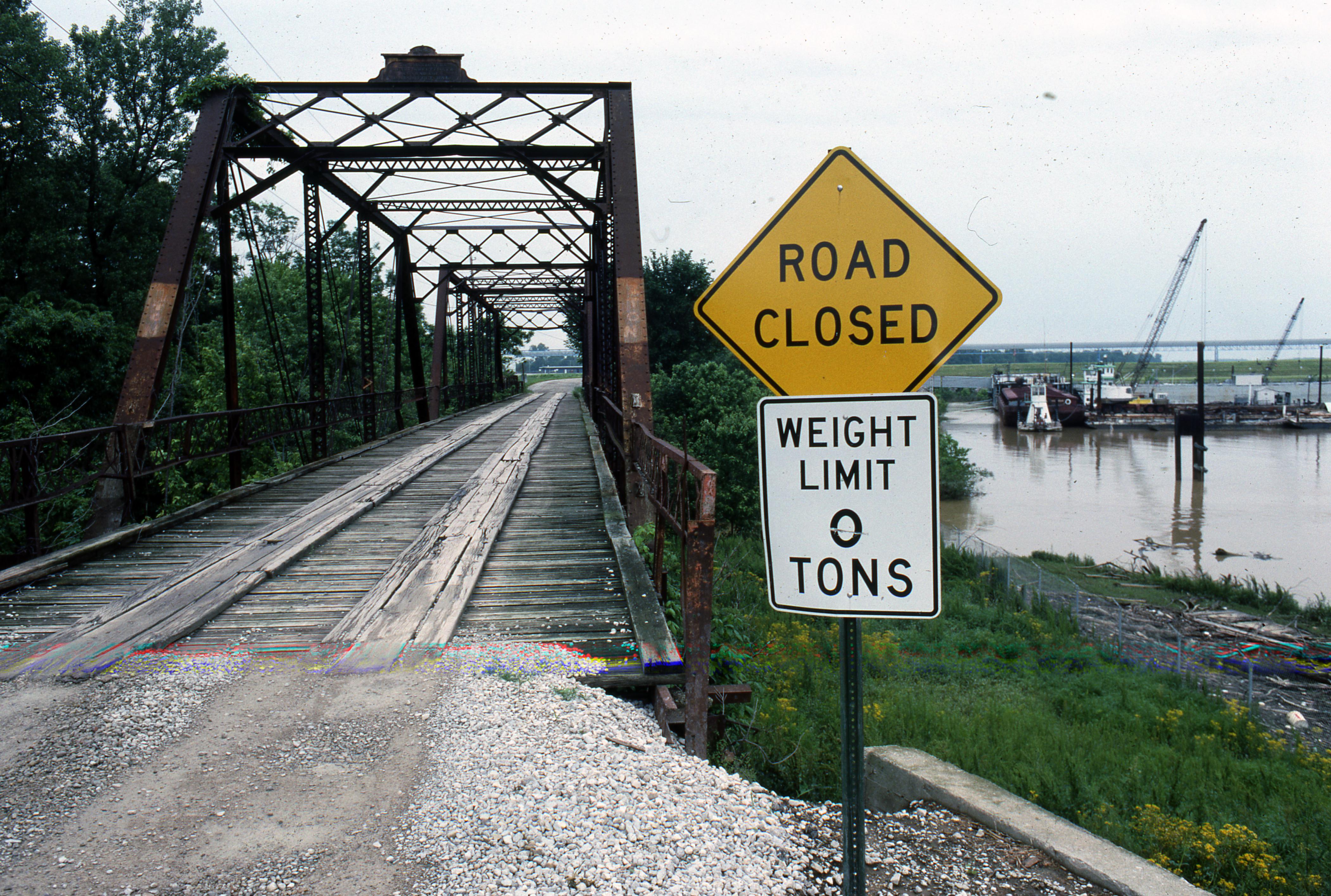 Flooded Iron Bridge build in 1895 on River Road east of Mount Vernon, IN.