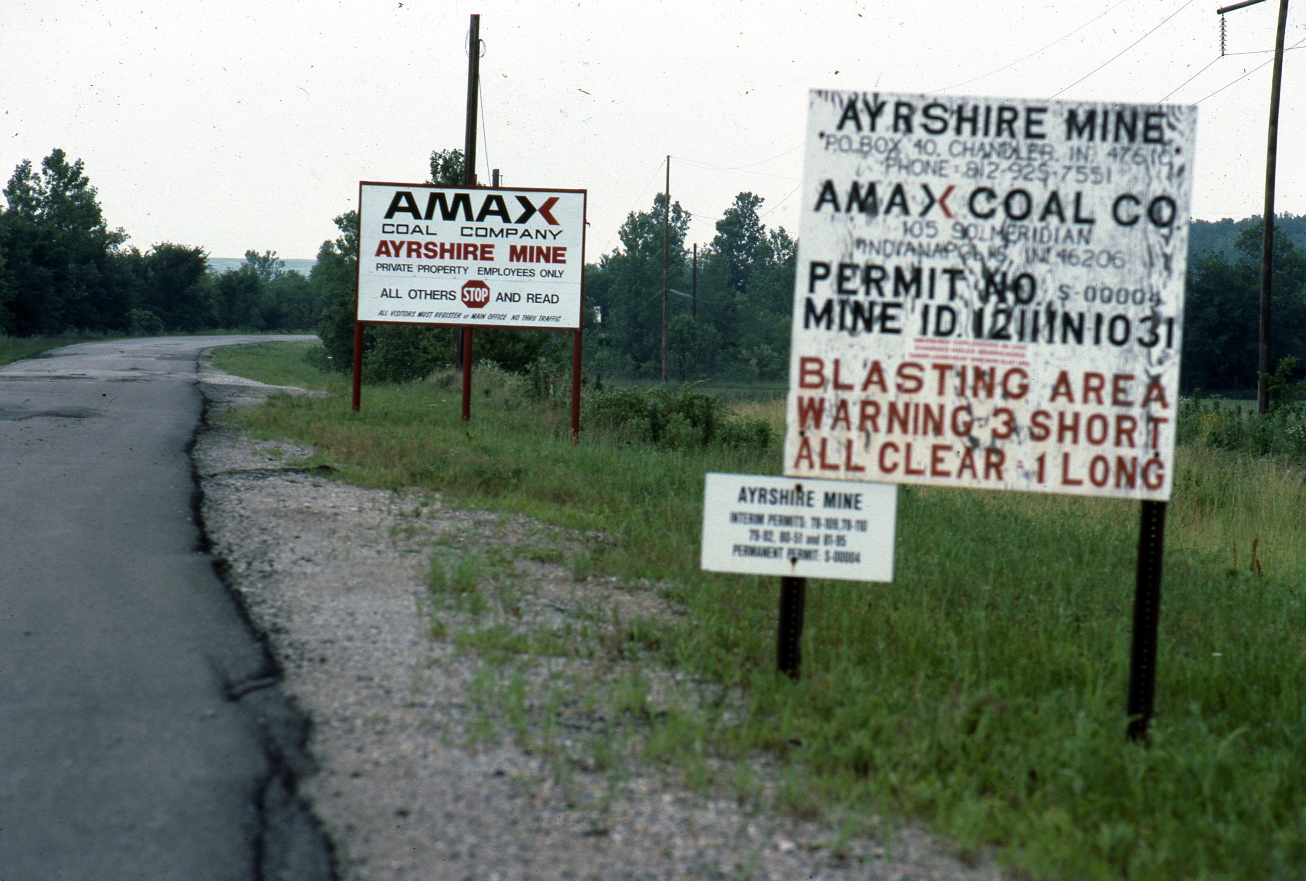 Signs for the AMAX Ayrshire Mine sign in Chandler, Indiana.