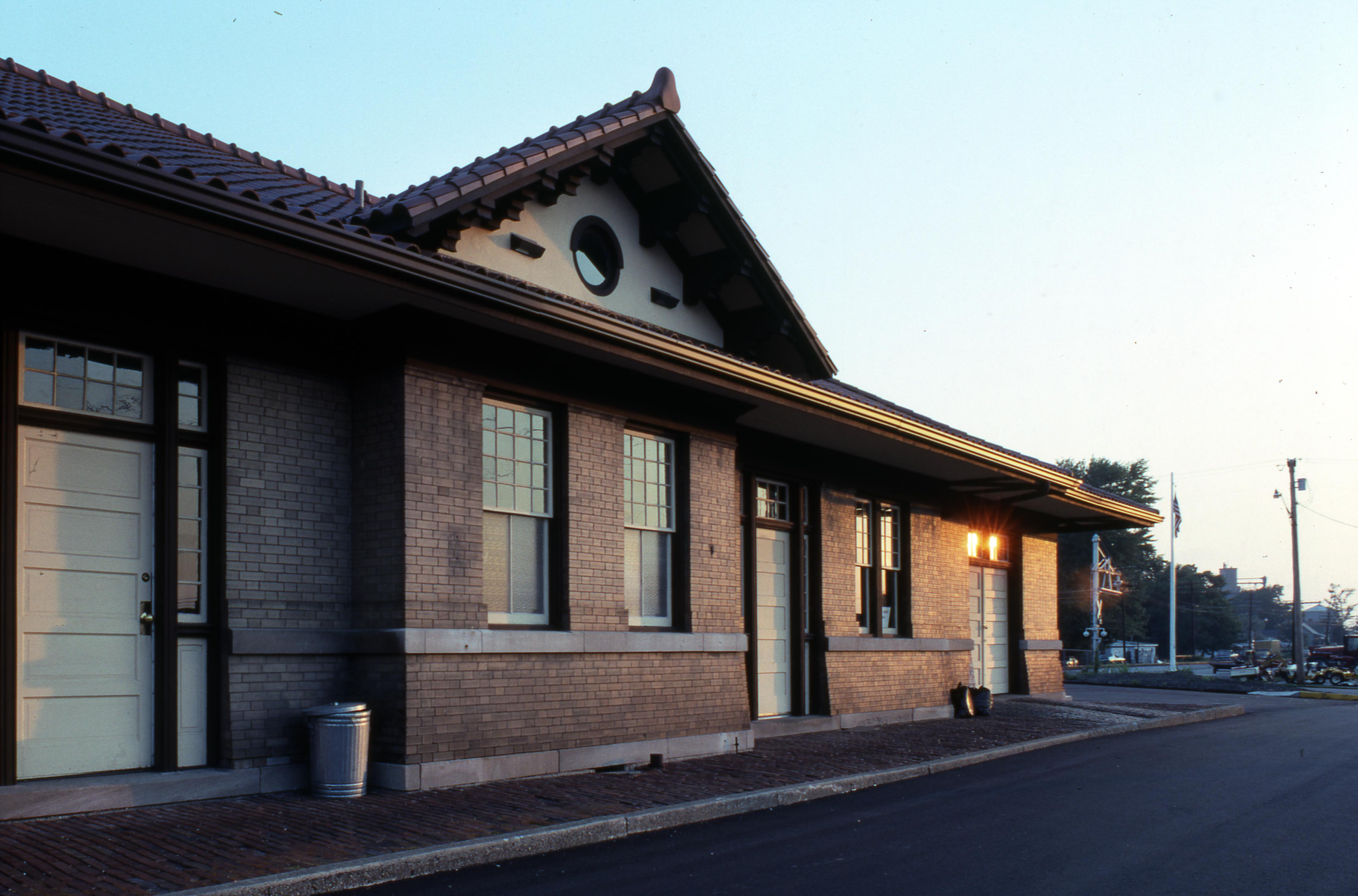 Daviess County Chamber of Commerce building in Washington, IN at 1 Train Depot St. This was the Baltimore and Ohio Depot. This Mission Rival brick structure depot with a Terra-Cotta roof was built in 1906 to replace the original wood, board-and-batten Ohio and Mississippi depot that set in this same location. However, the O. & M. depot was not demolished, rather, railroad work crews literally moved the depot about 500 feet to the east of its original location to function as the B. & O. freight house near the passenger depot.