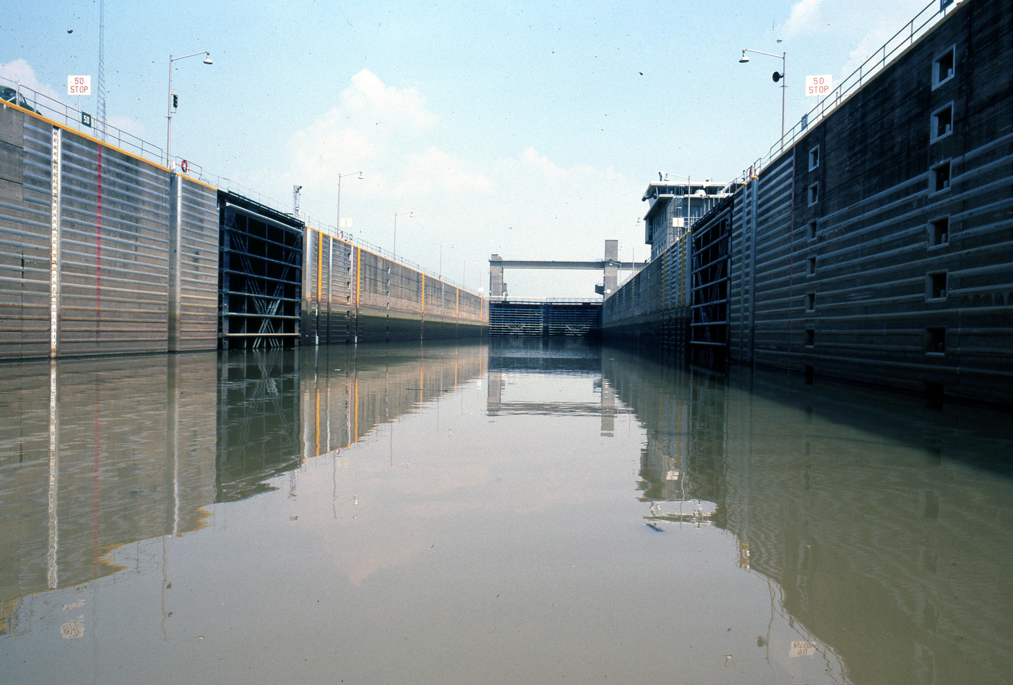 The Newburgh Locks and Dam is located on the Ohio River near Newburgh, Indiana, at mile 776.1 below Pittsburgh, Pennsylvania. It is about 16 miles upstream from Evansville, Indiana. The Navigation locks are located on the right descending bank or Indiana side of the river. The upper pool maintained above the dam extends upstream for a distance of 55.4 miles to the Cannelton Locks and Dam at mile 720.7. Newburgh Locks and Dam was authorized as a replacement for existing Locks and Dams 46 and 47 on April 24, 1962, by Secretary of the Army under authority of Section 6 of the Rivers and Harbors Act approved March 3, 1909. Newburgh Locks� construction began in June 1966. The locks were placed in operation in December 1969. Dam construction began in June 1970, and was completed in 1975. The most significant change was an addition of a Centralized Control Station on top of the Operations Building in 1980. Lock operators perform a major portion of the lock and dam operations from the Central Control Station.