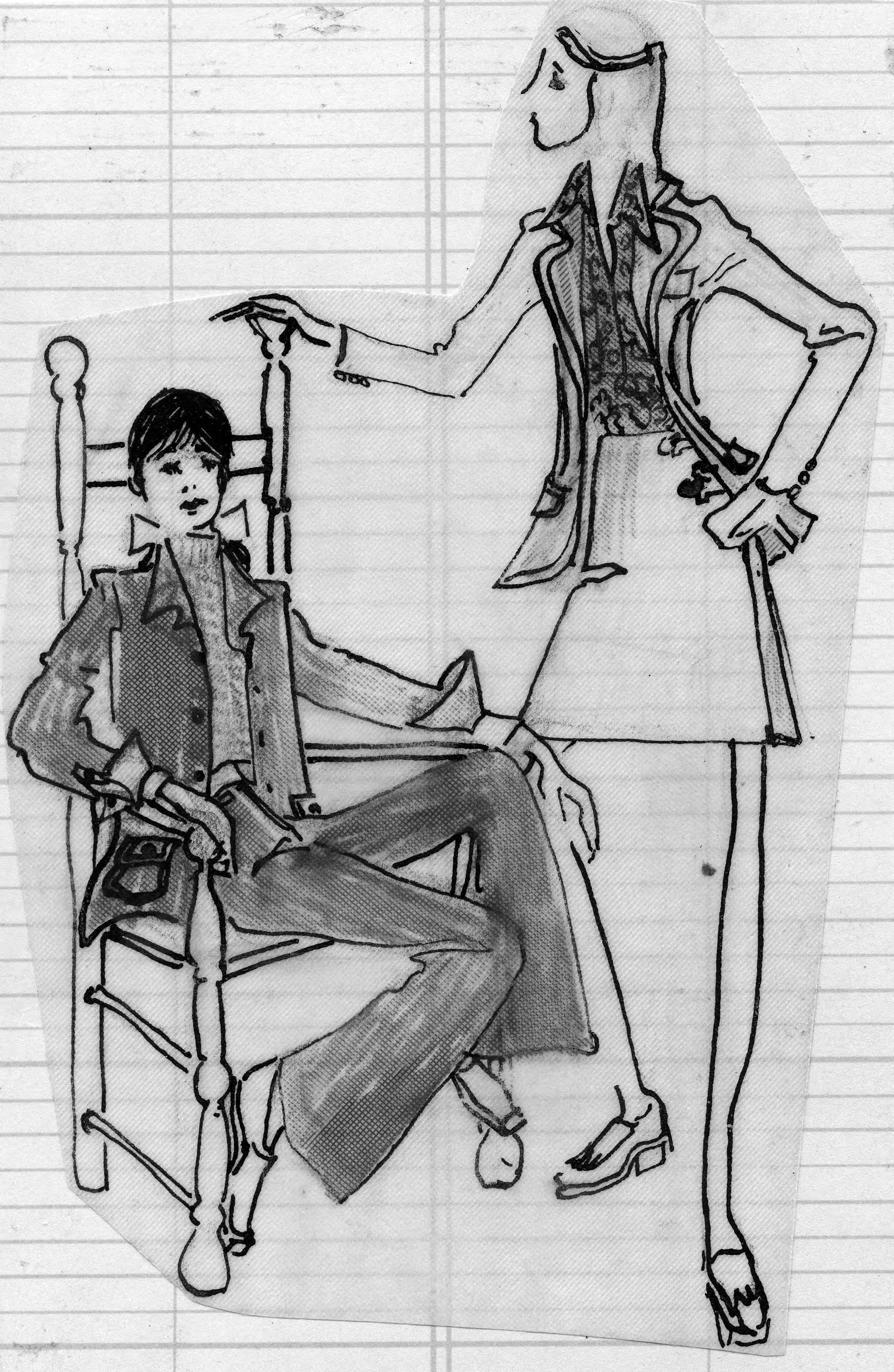 Sketch of two suit outfits